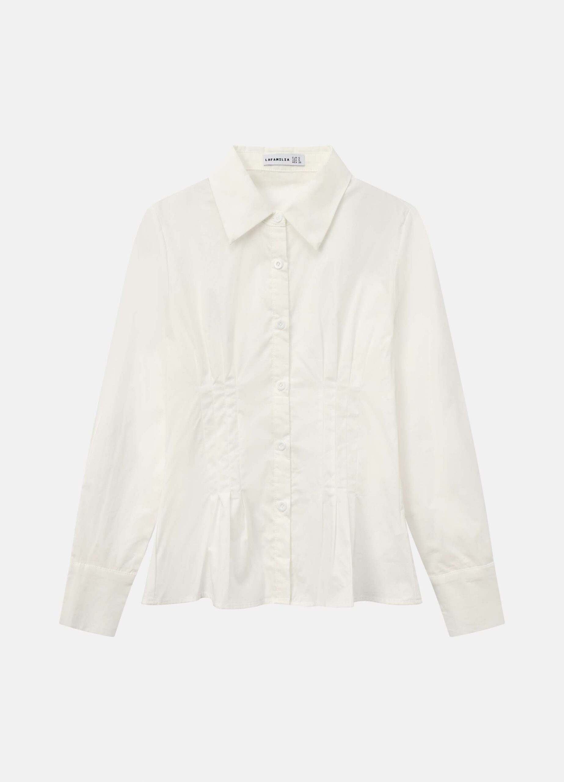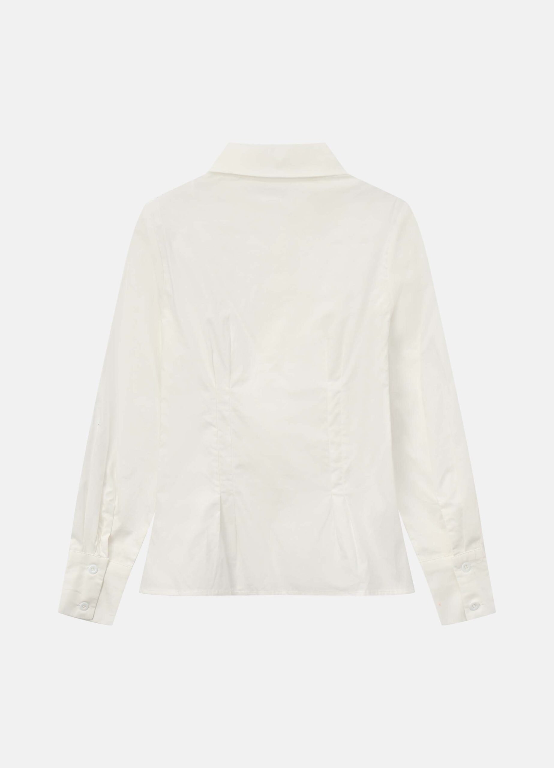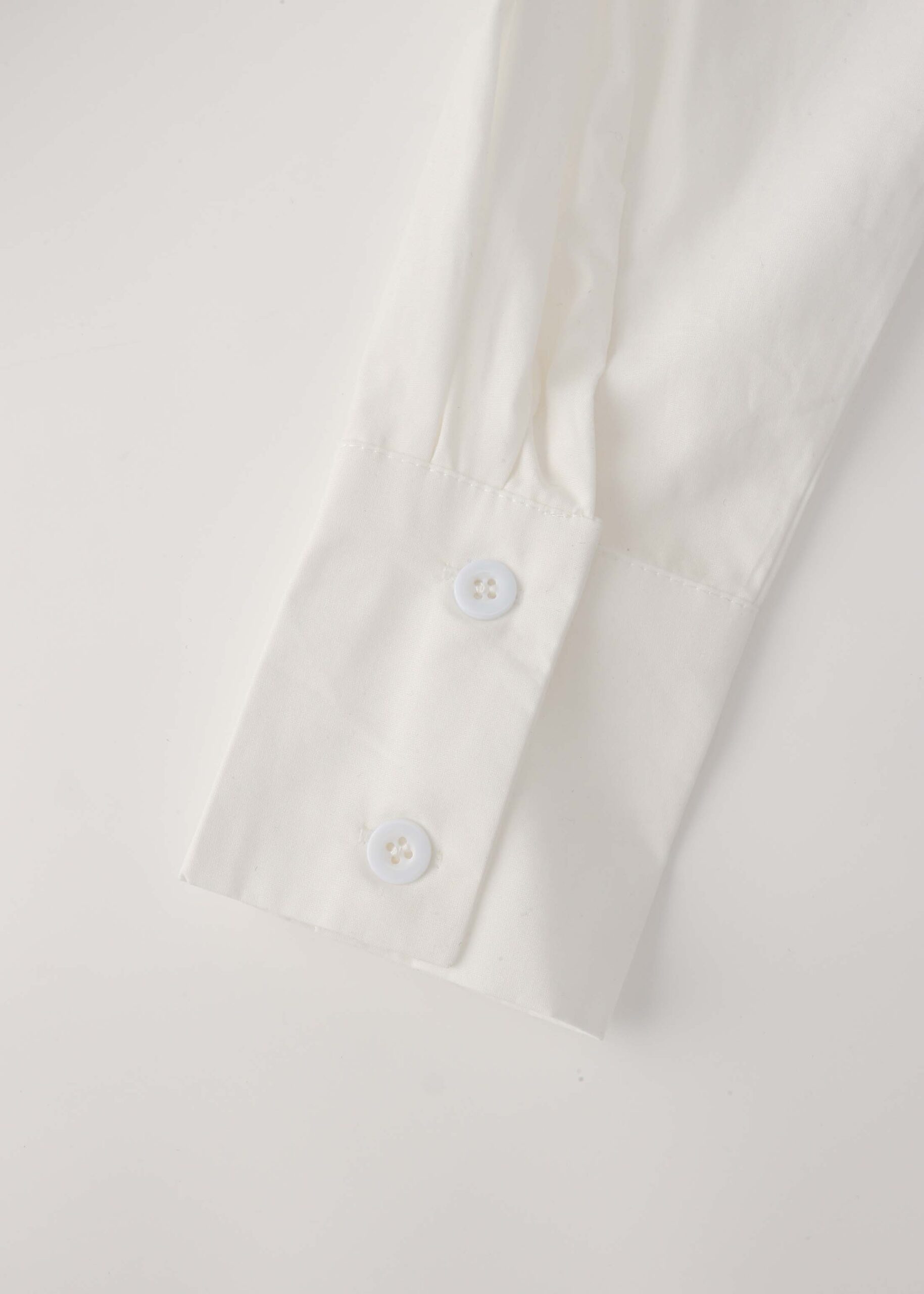 Women shirt, pleated design, front buttons to close, long sleeves with tight cuff, rolled collar with front button, unique and modern