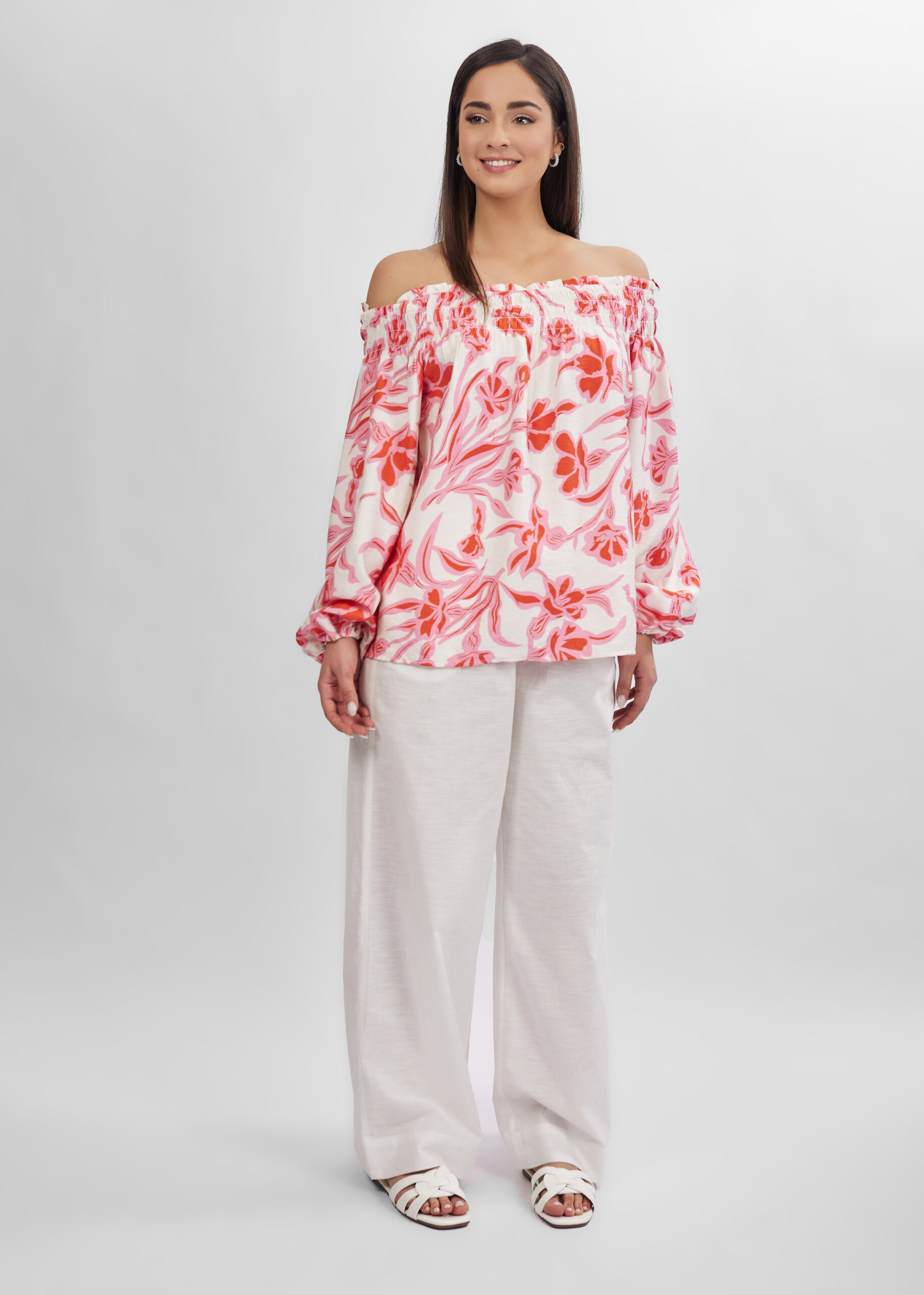 Women blouse, printed, long sleeves with tight cuff, elastic collar, unique and colorful