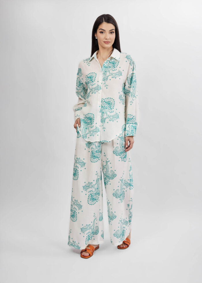 Women trouser, flow, printed, elastic waist with front tie, practical and comfortable