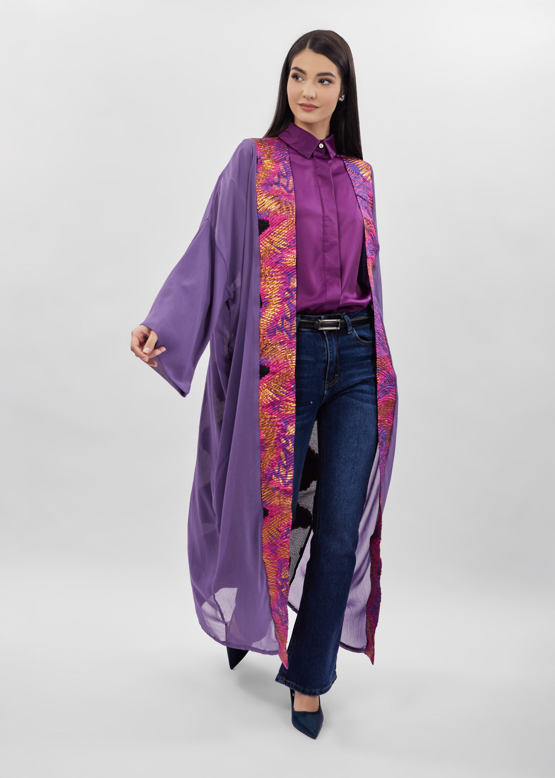 Women abaya, long, open, long wide sleeves, printed from the front and back, unique and suitable with many styles