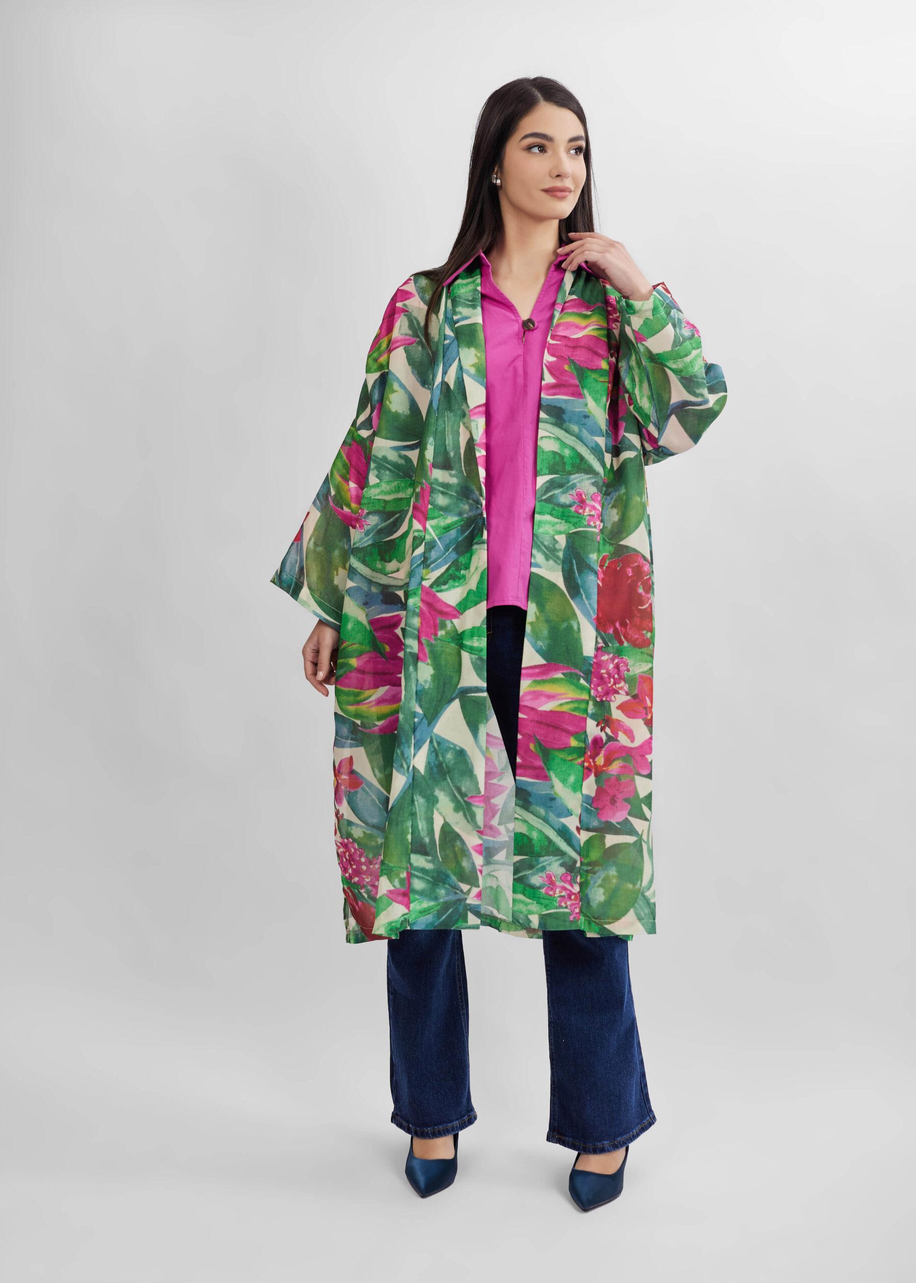 Women cardigan, long, printed, open, long sleeves, unique and colorful