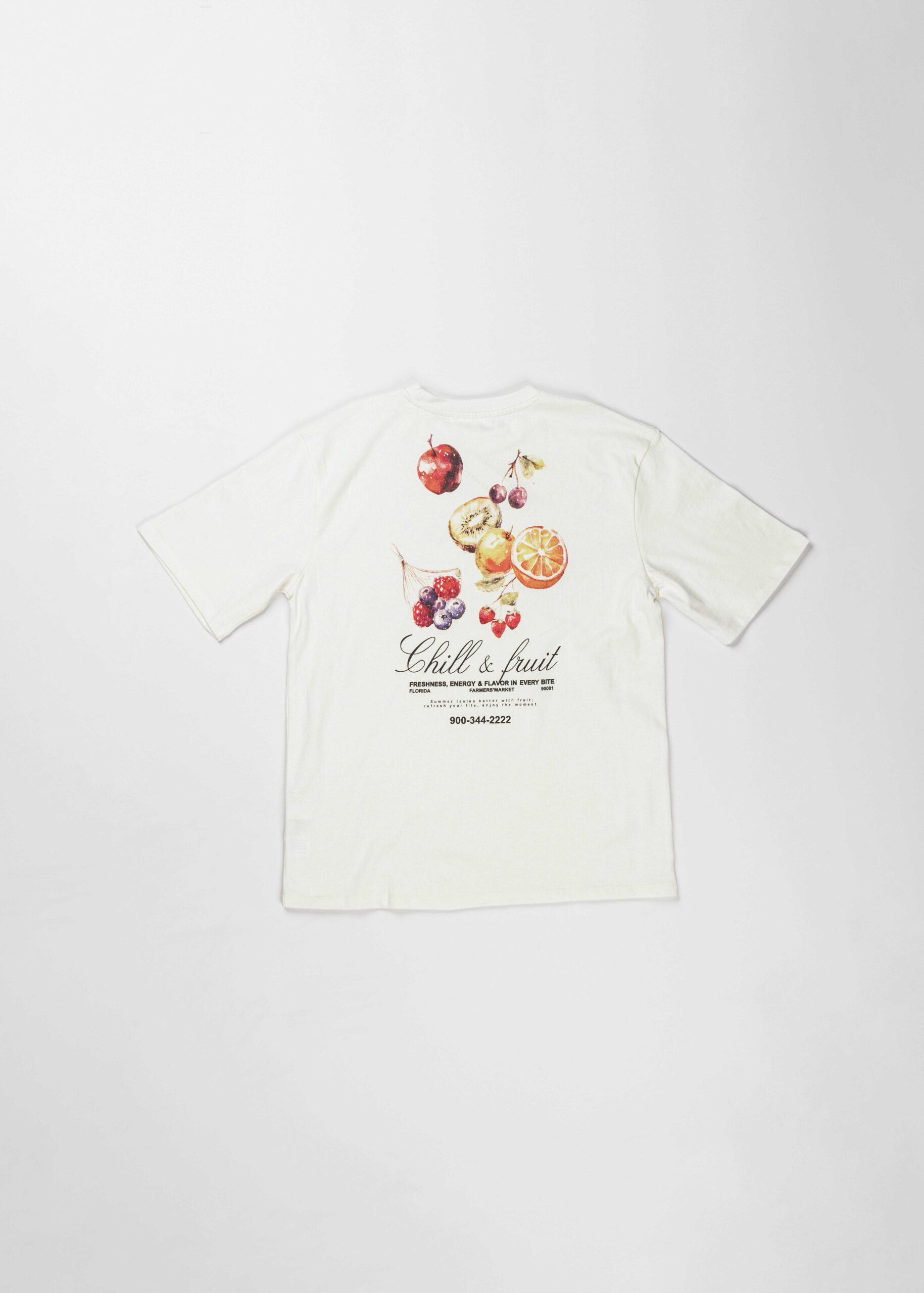 Women t-shirt, “Chill & Fruit” printed from the front and back, round neck, short sleeves, unique and practical