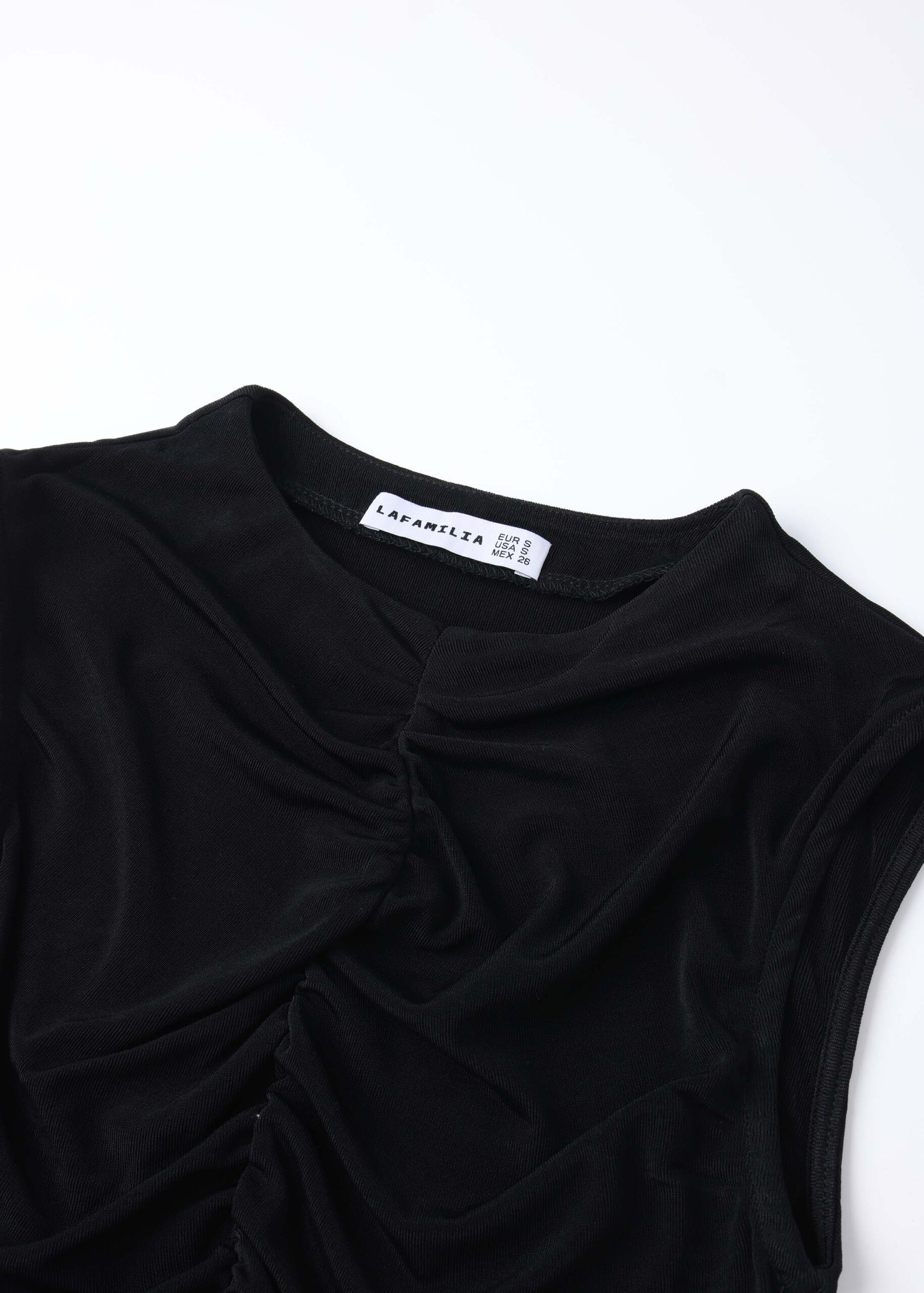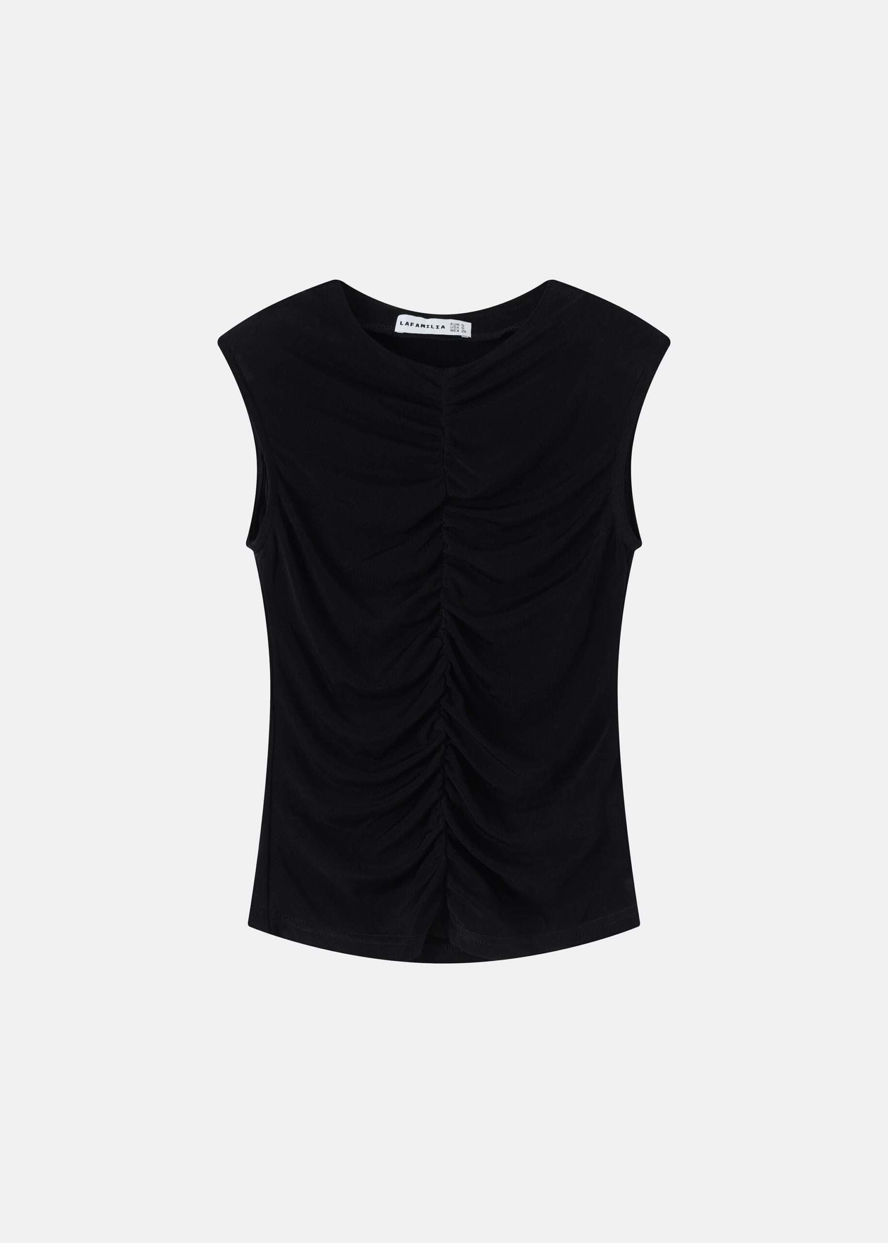 Women top, ruched design from the front, round neck, sleeveless, unique and modern