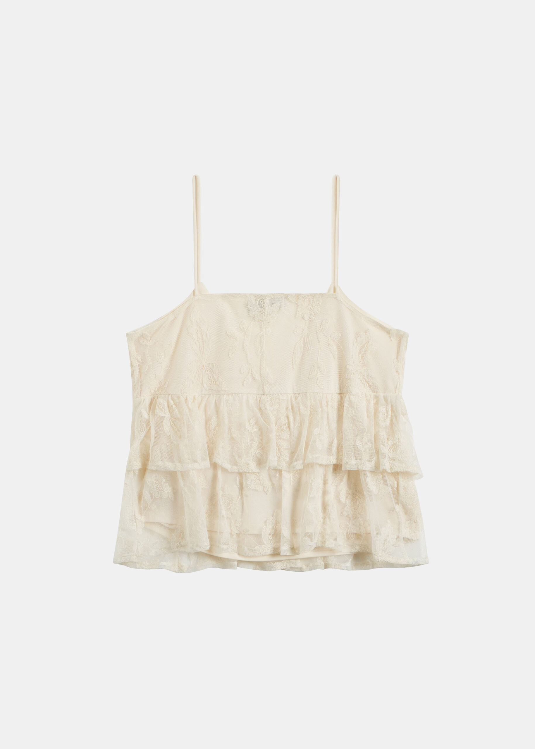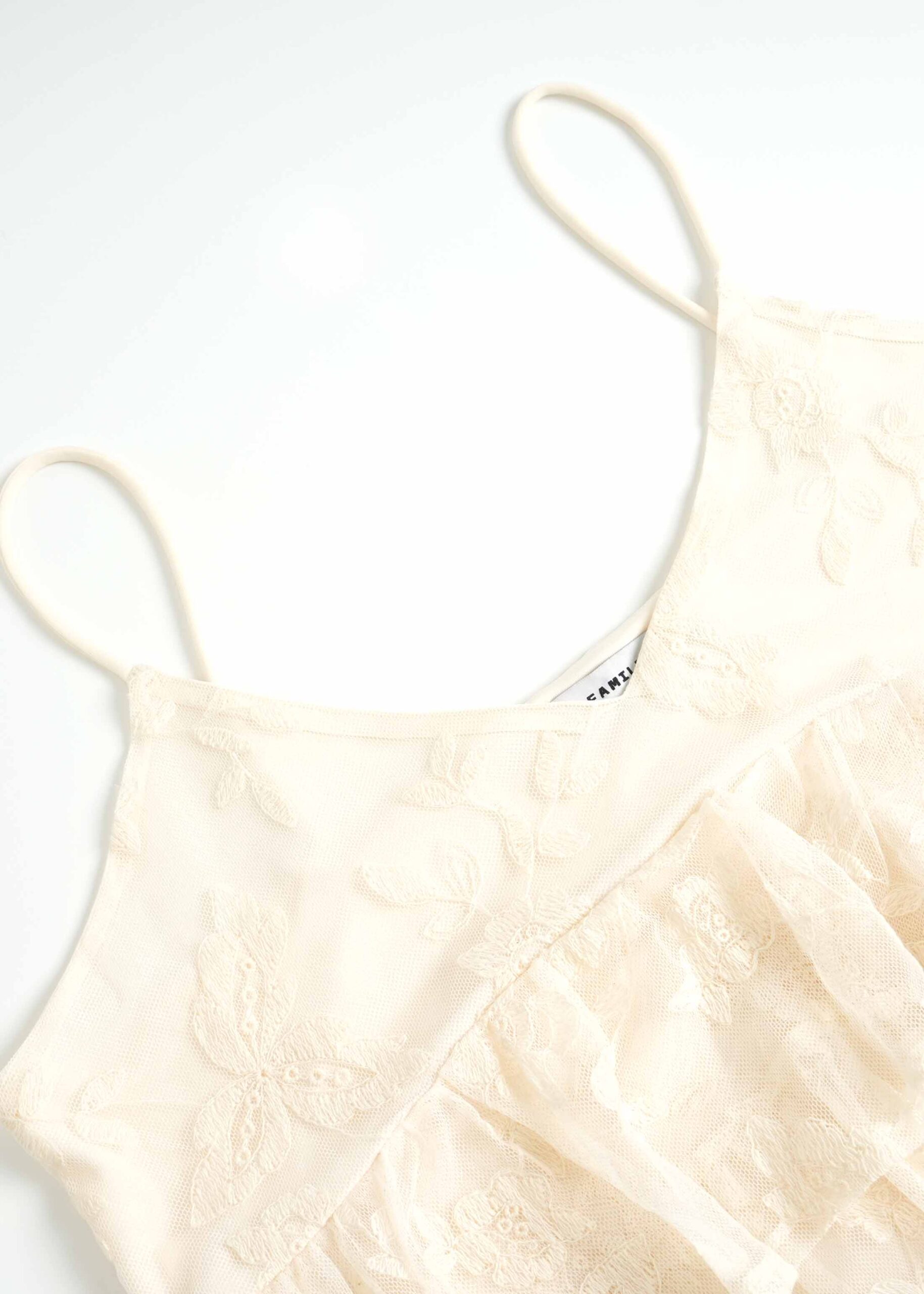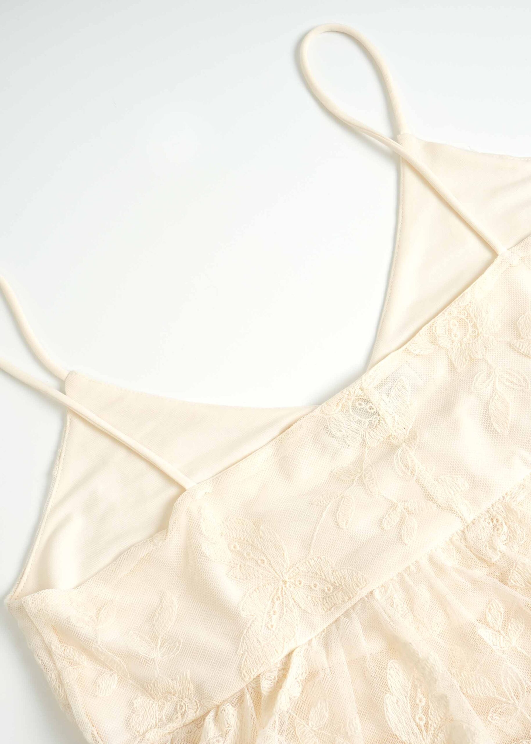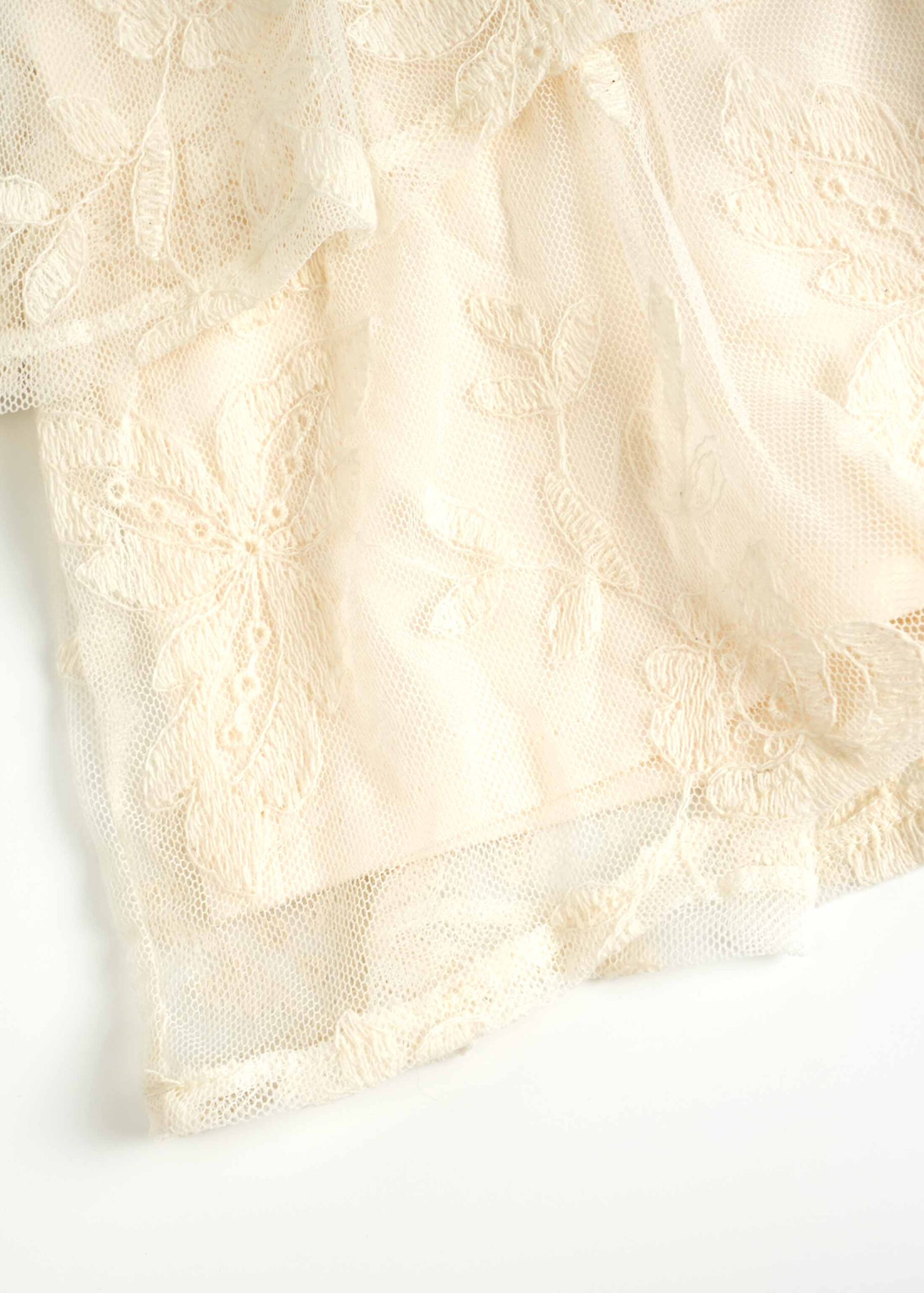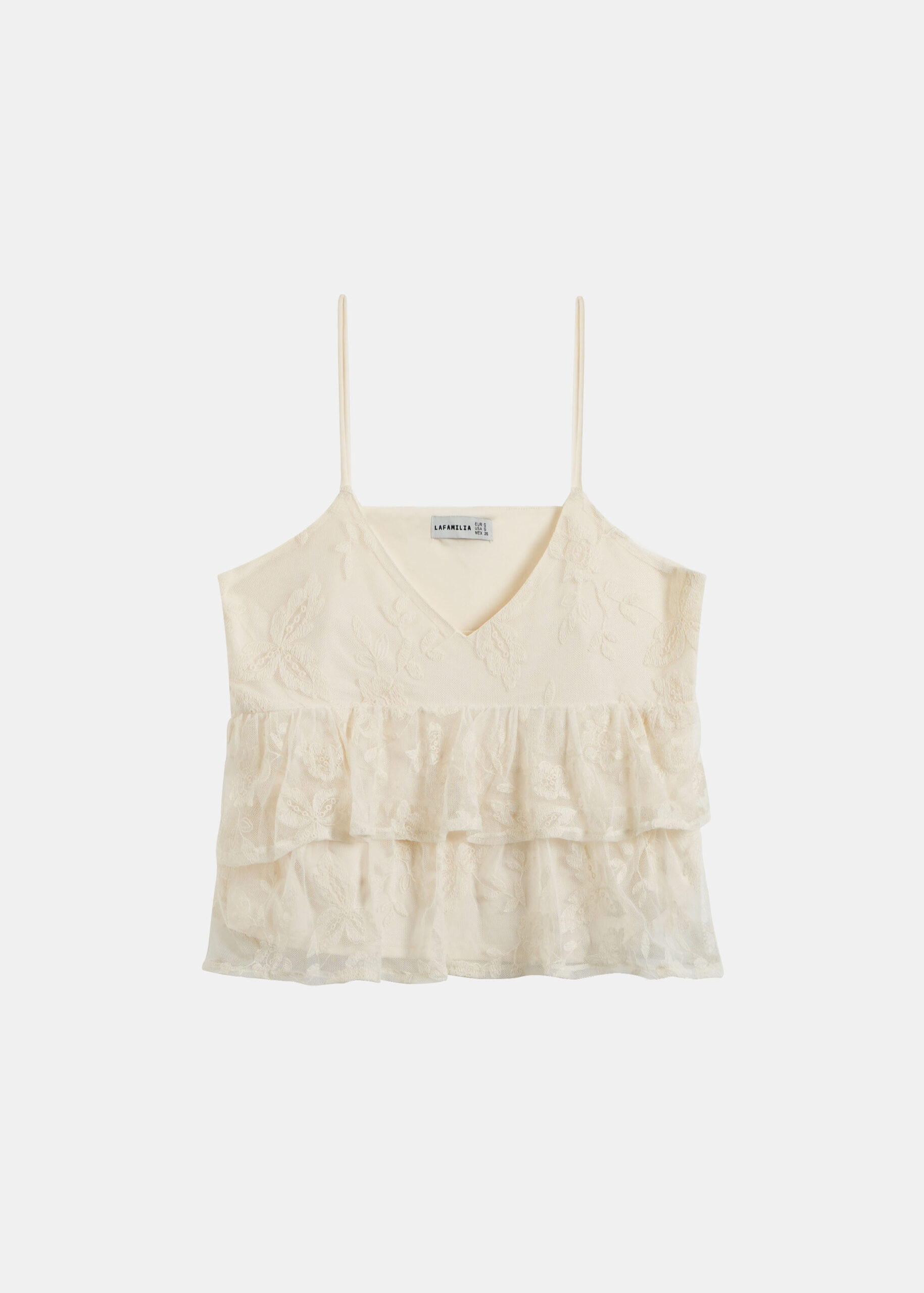 Women top, embroidery tulle, lined, ruffled layers, sleeveless, V neck, unique and modern