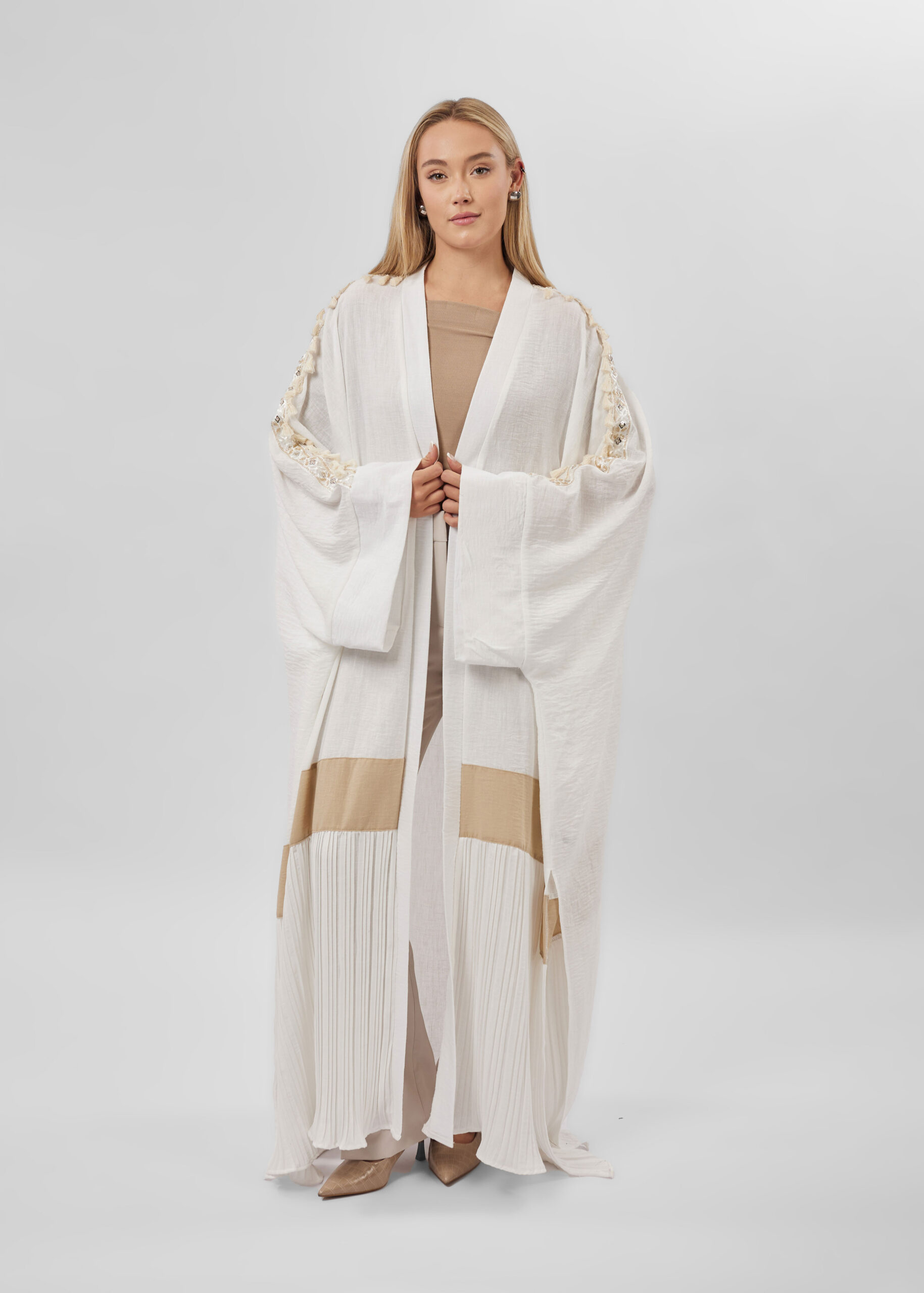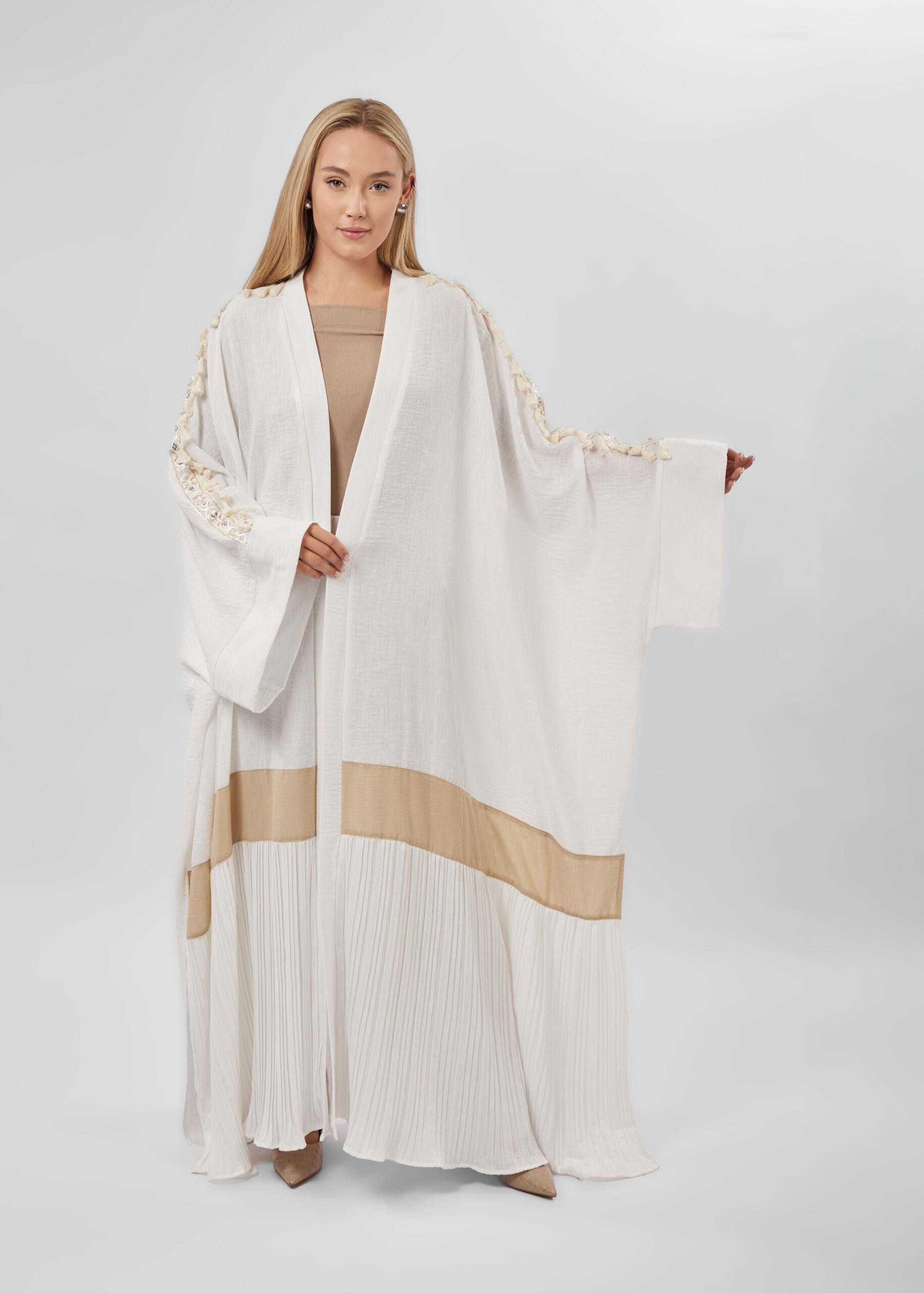 Women abaya, ruffled design, long, open, long wide sleeves, pleated from the bottom, unique and modern