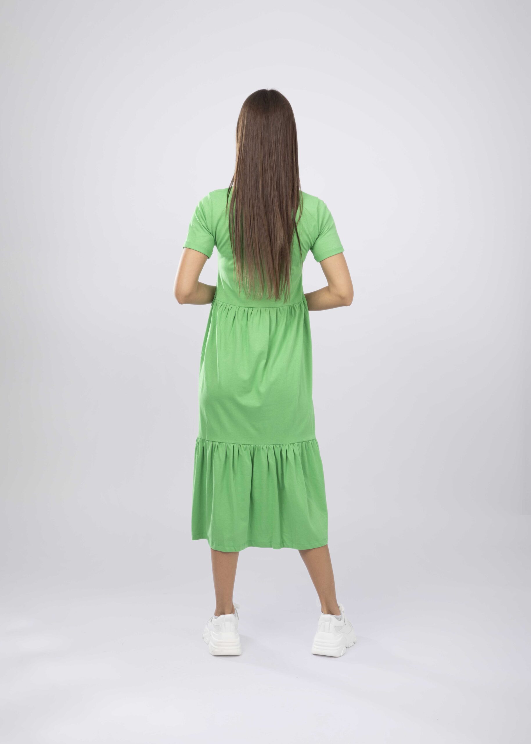 Women dress, plain, ruffled, knee length, round neck, short sleeves, unique and modern