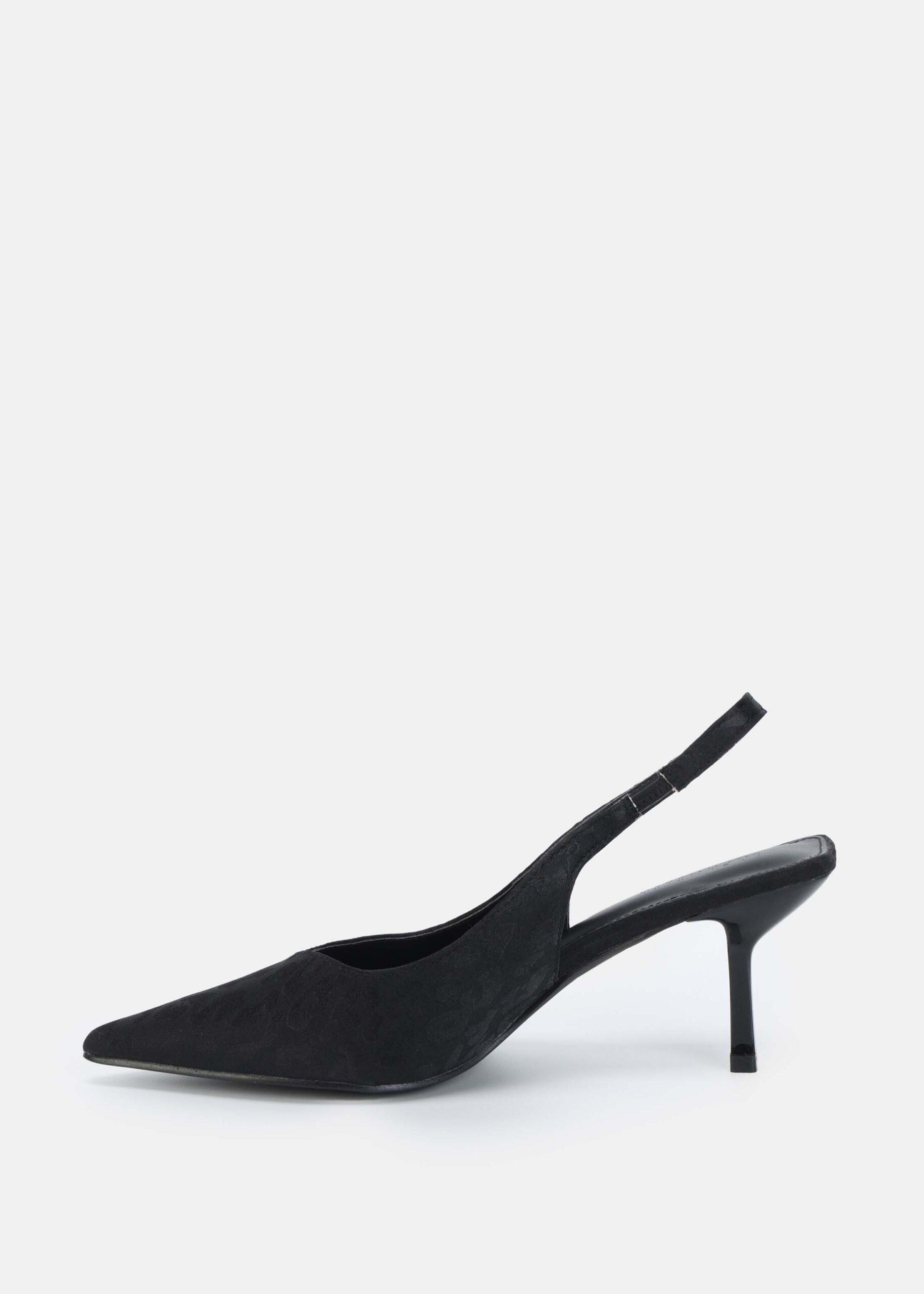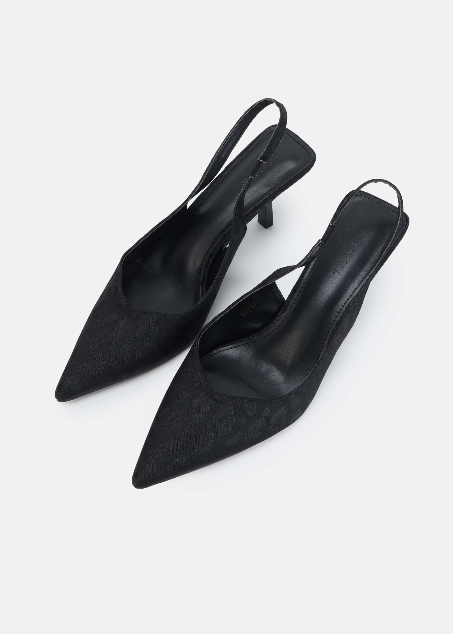 Women sandal, satin with cheetah patterned, heels, point toe, slingback, unique and modern