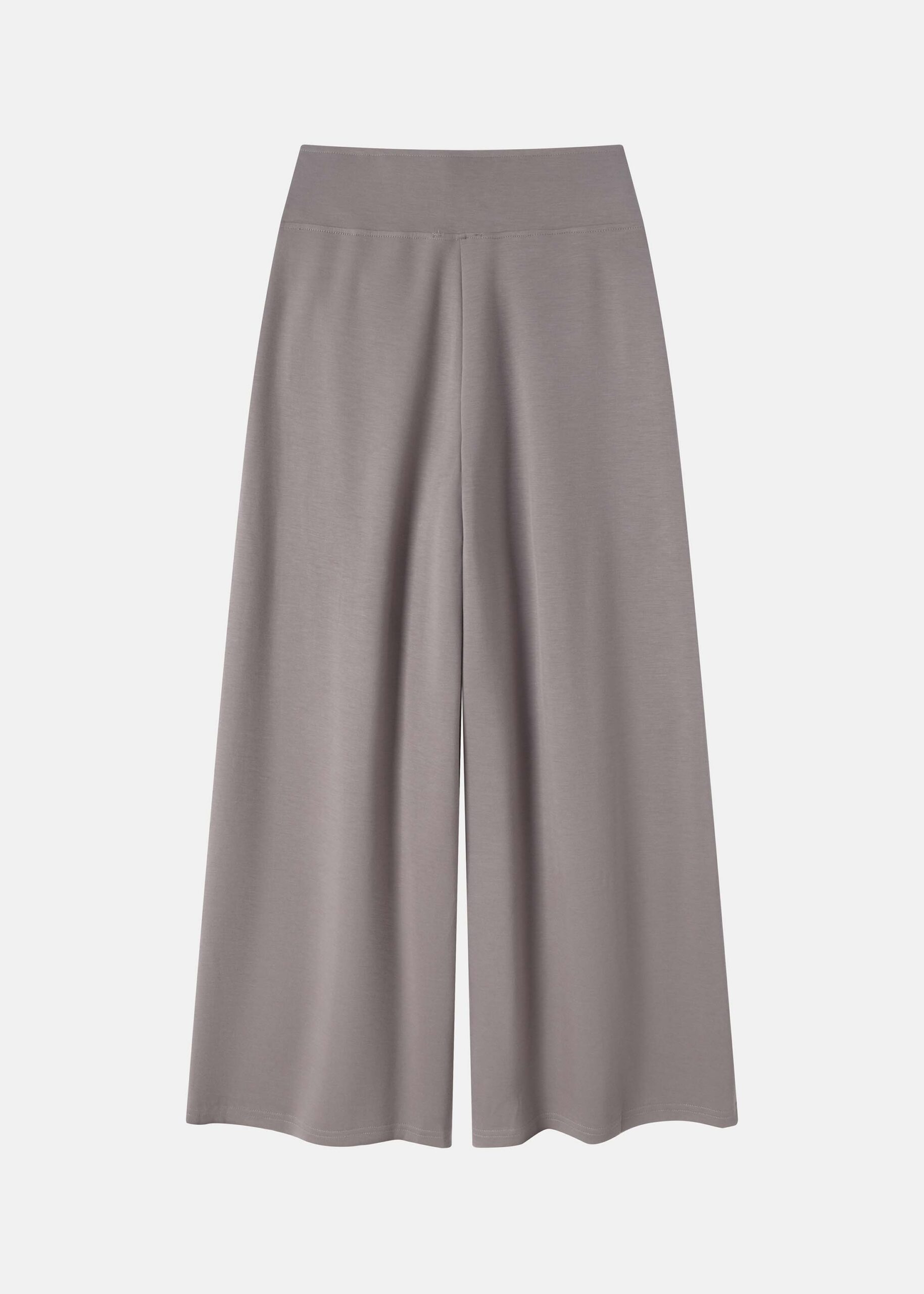 Women trouser, scuba fabric, wide leg, pleats detail along the leg, high elasticated waist, comfortable and practical