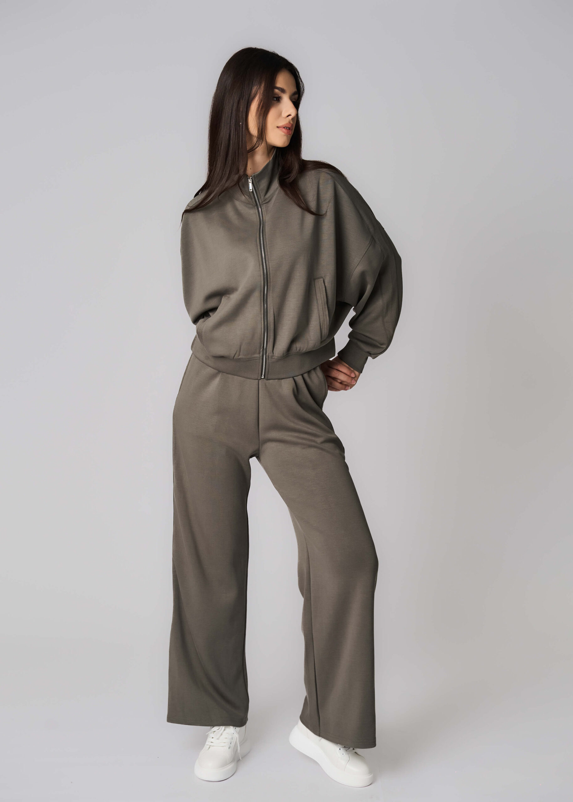 Women trouser, plain, flow, scuba fabric, elastic waist, front pockets, slit sides with buttons, comfortable and practical