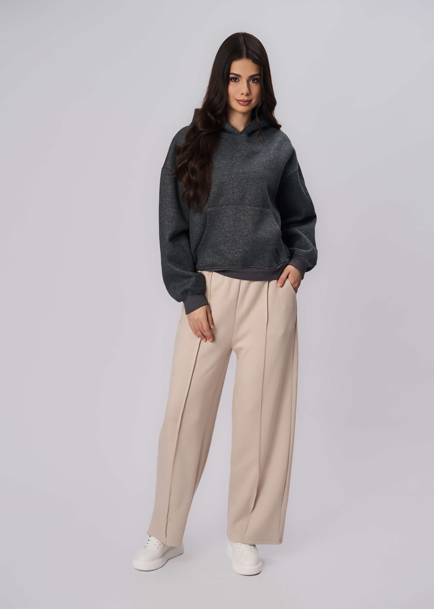 Women trouser, plain, flow, scuba fabric, elastic waist with front tie, front pockets, comfortable and practical