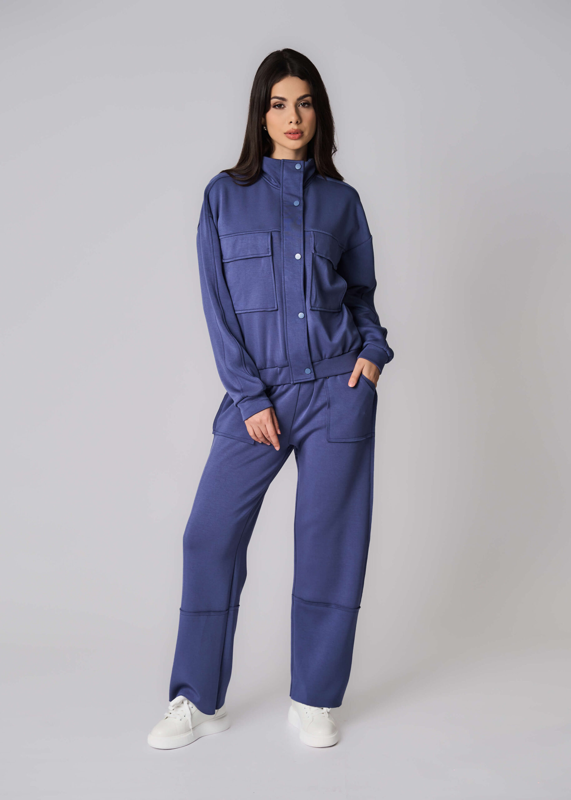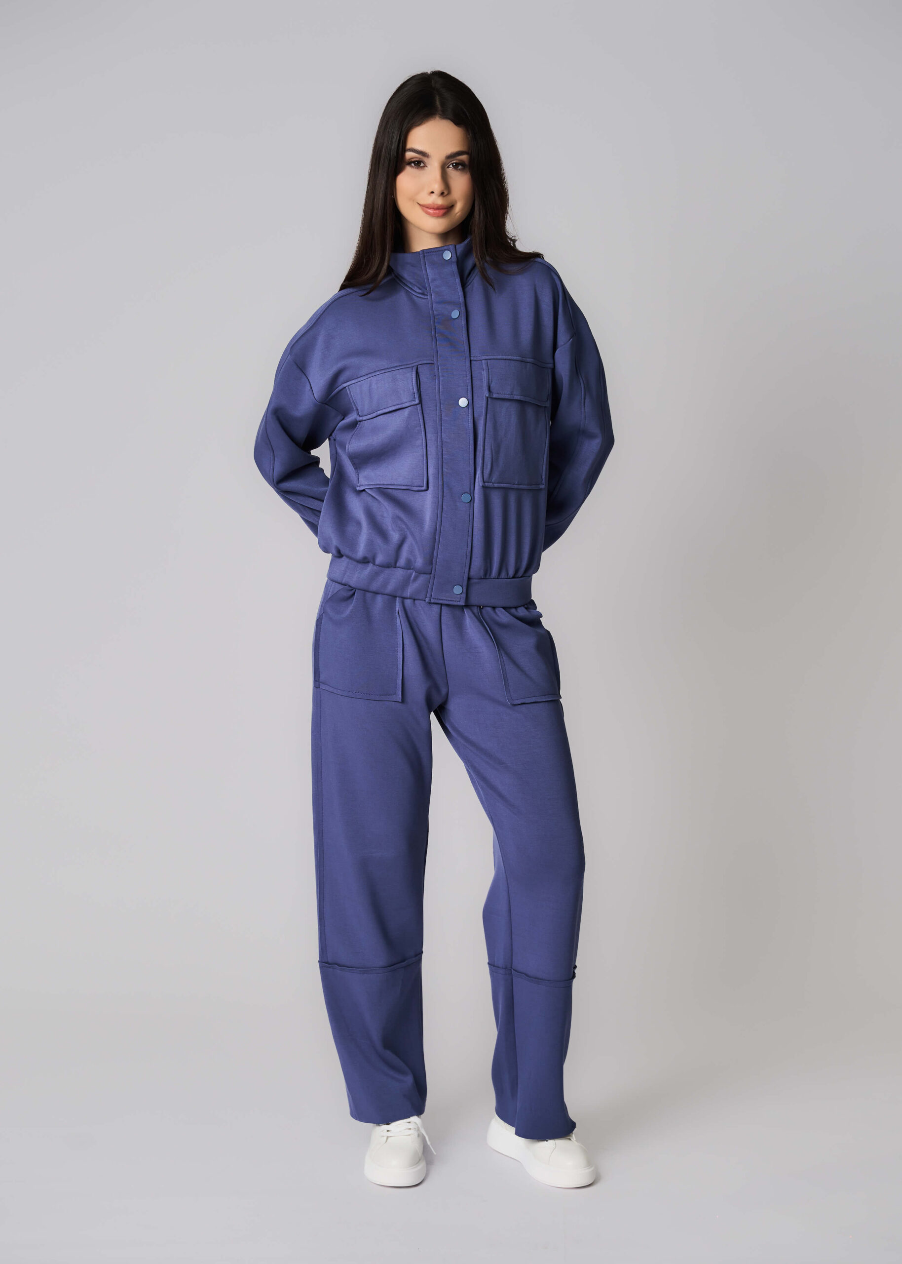 Women trouser, plain, scuba fabric, elastic waist with front tie, front pockets, comfortable and practical
