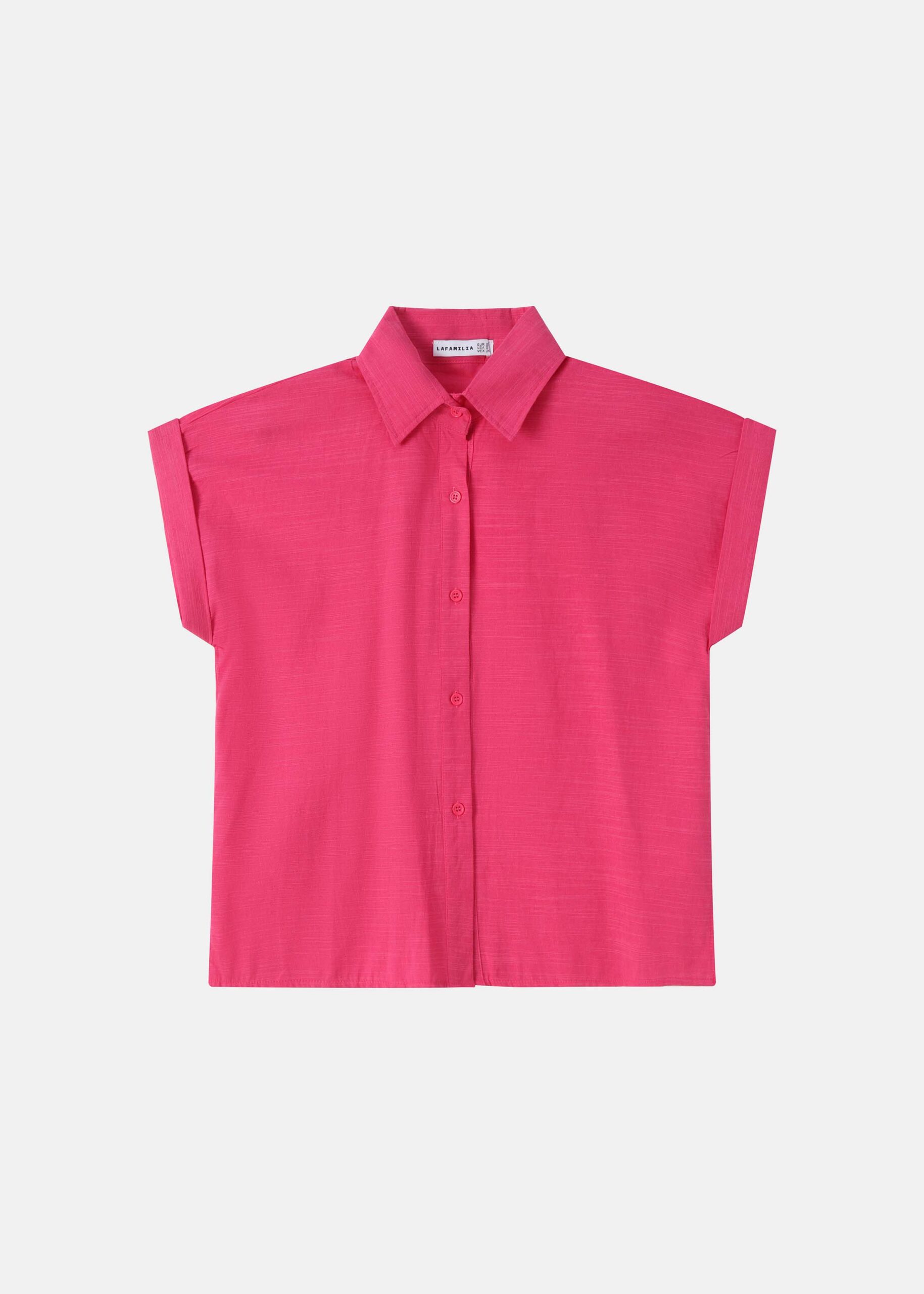 Women shirt, plain, rolled collar, front buttons to close, short sleeves, practical and unique