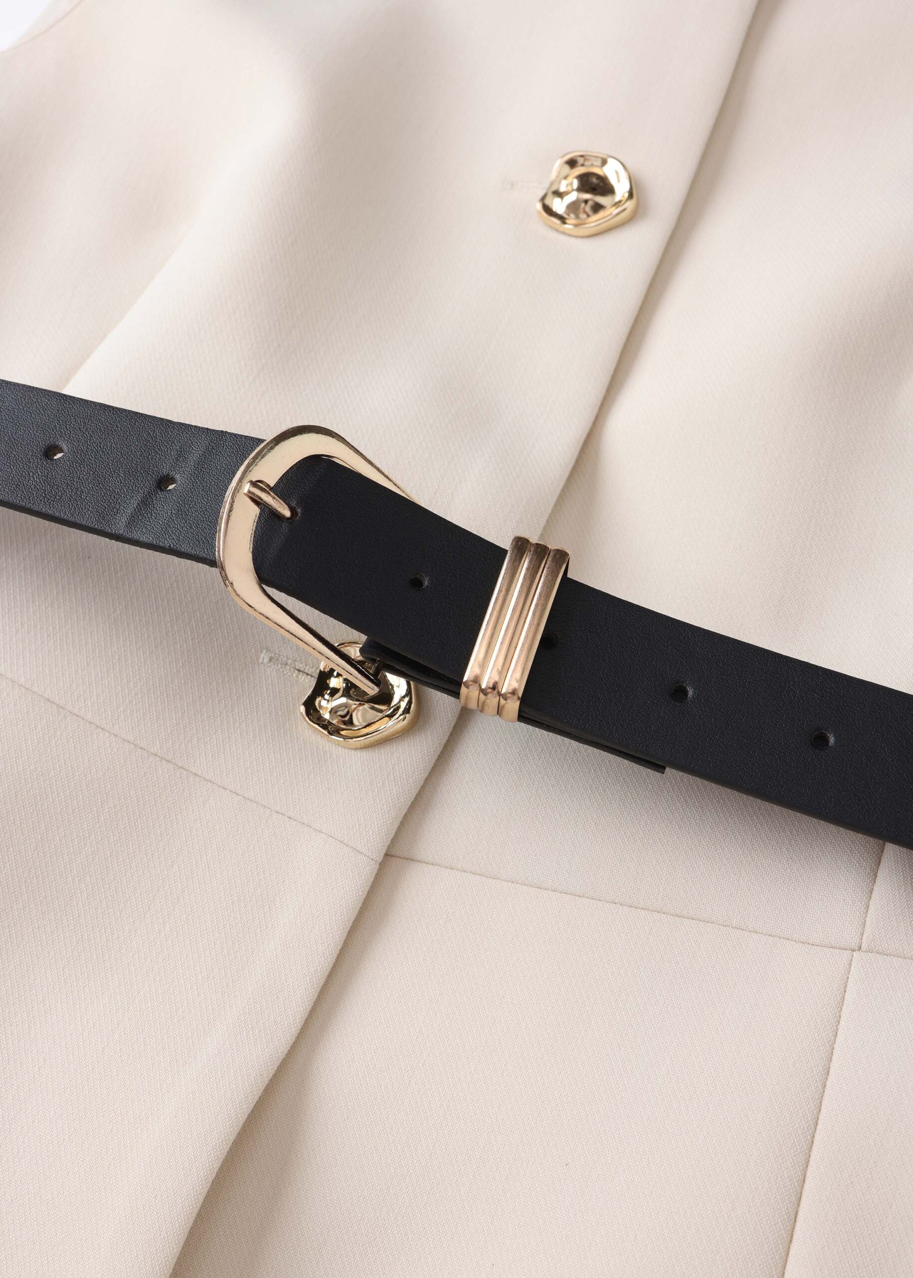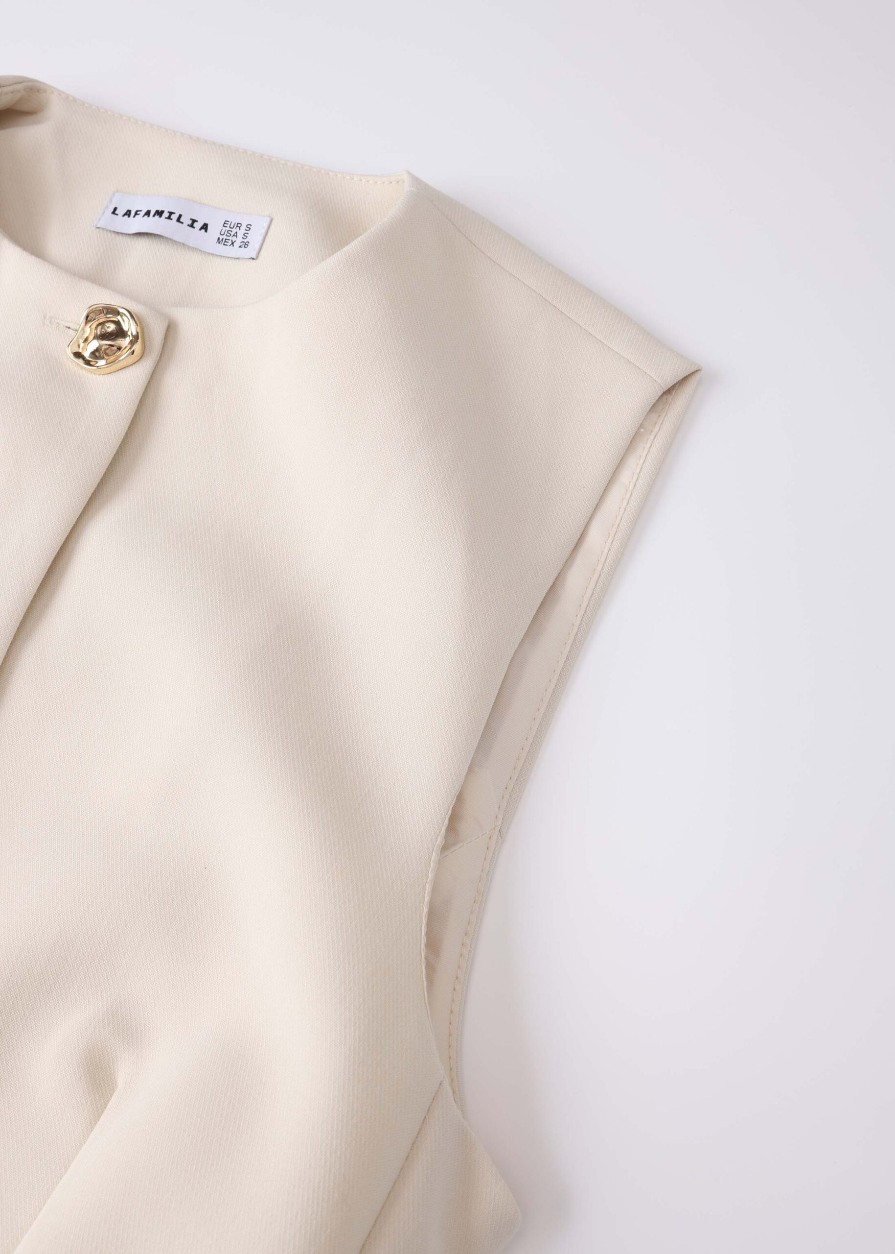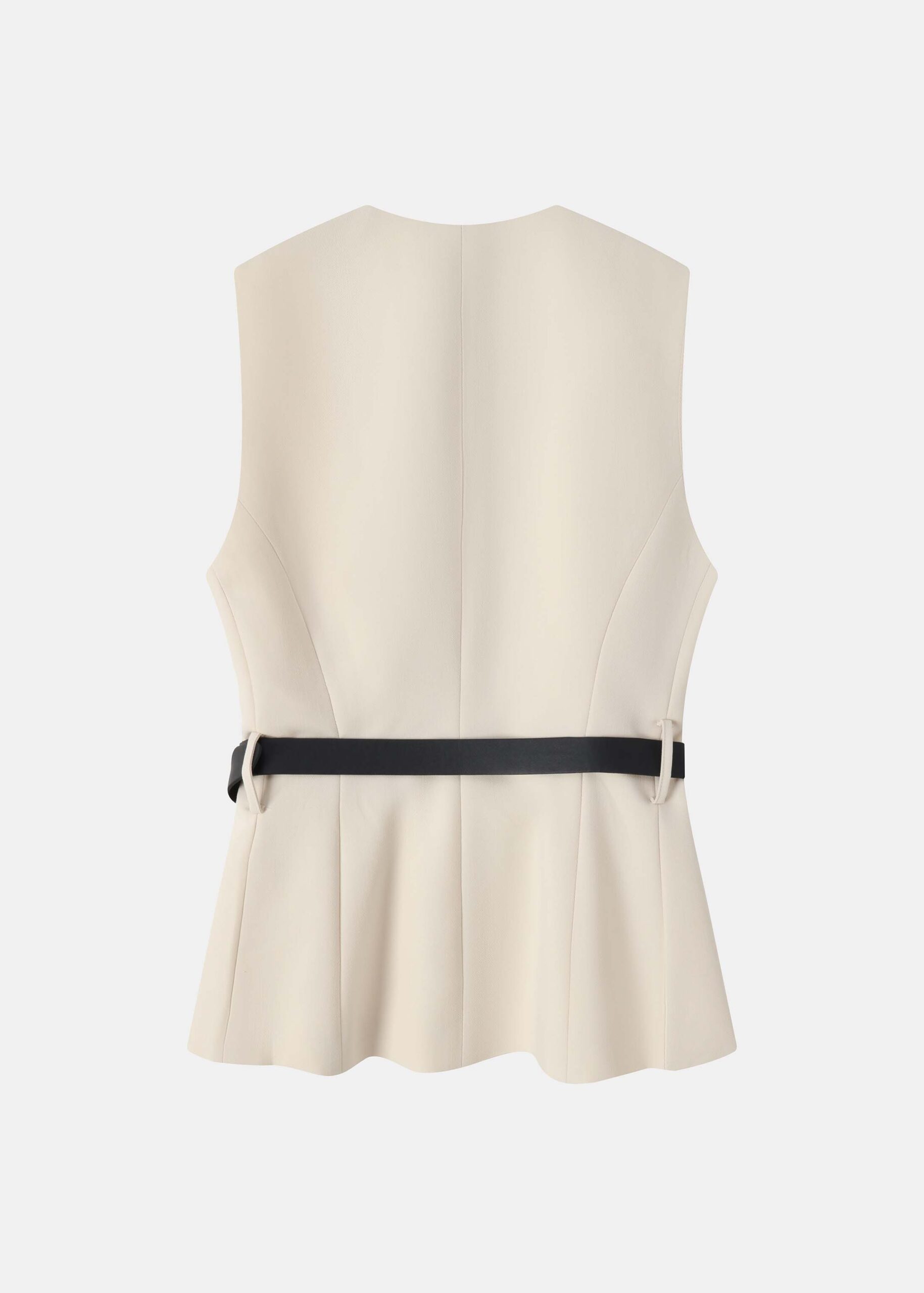 Women vest, round neck, sleeveless, front buttons to close, waist belt, unique and modern