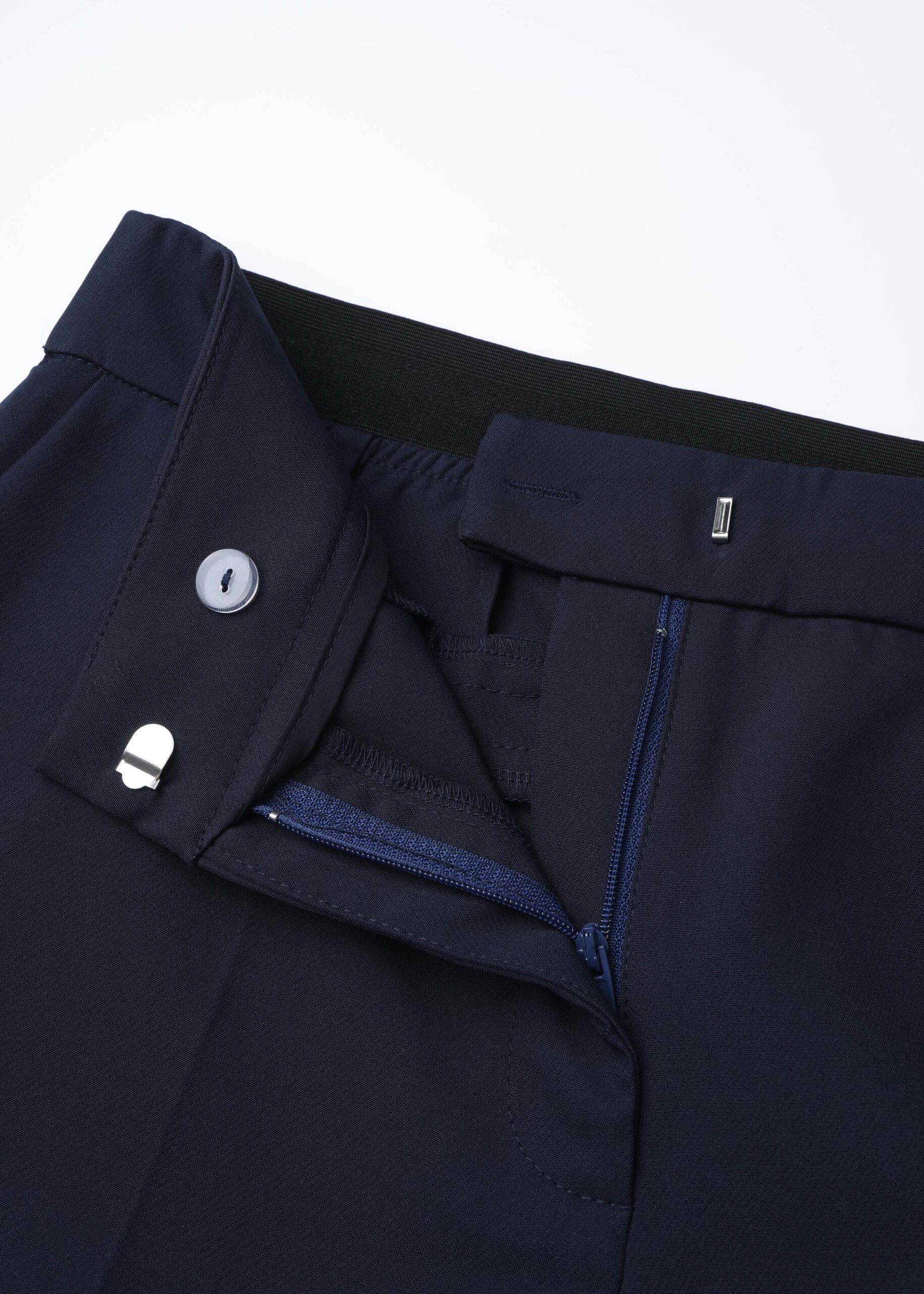 Women trouser, straight-leg, front button and zipper closure, front and back pockets, color-block waist, unique and practical