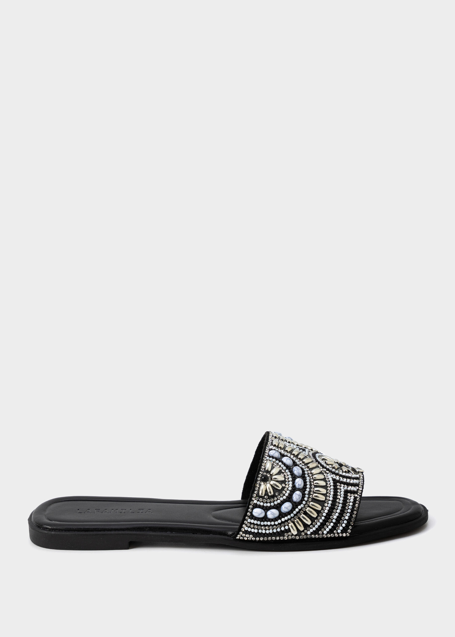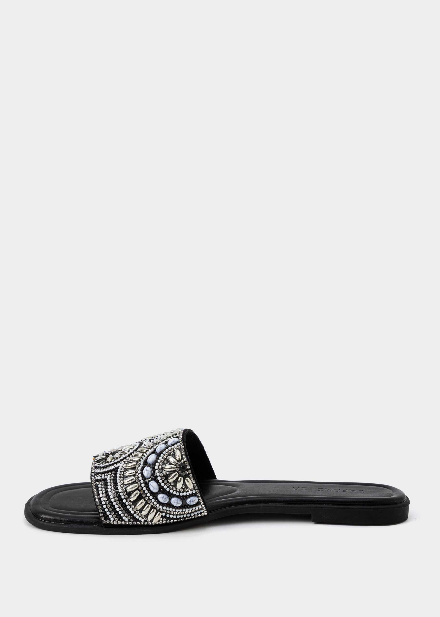 Women slipper, leather, flat, upper strap with strass decor, unique and comfortable