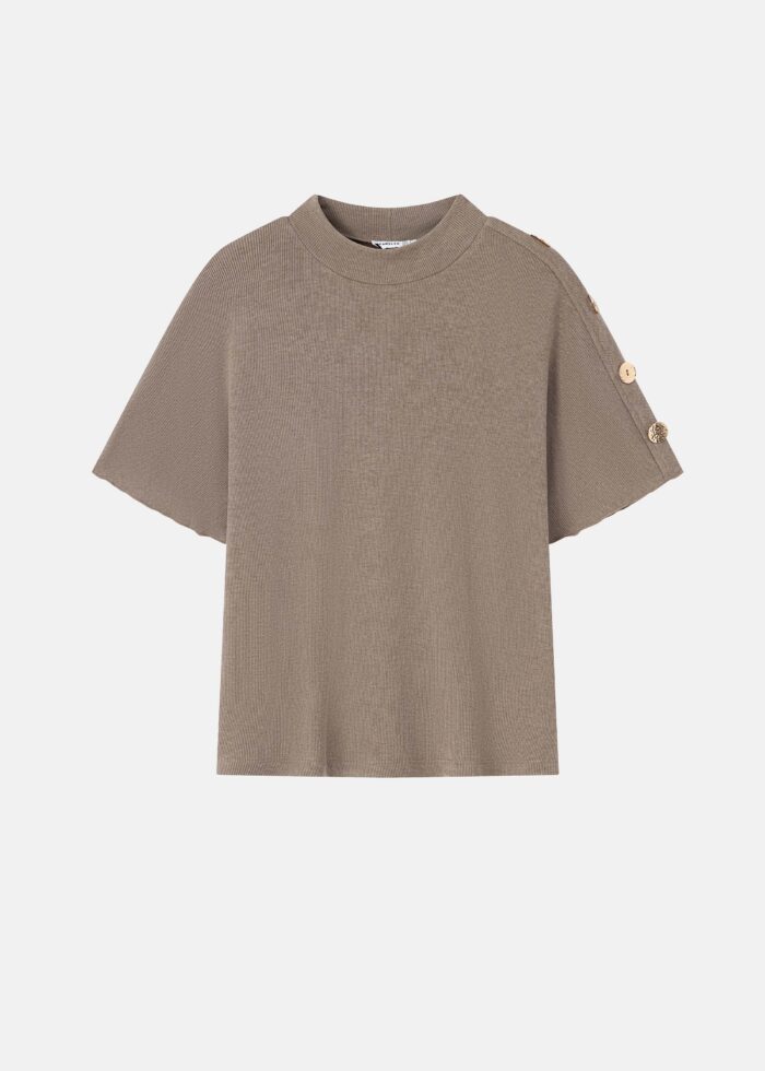 Women t-shirt, striped fabric, round neck, short sleeves wtih buttons decor, unique and practical