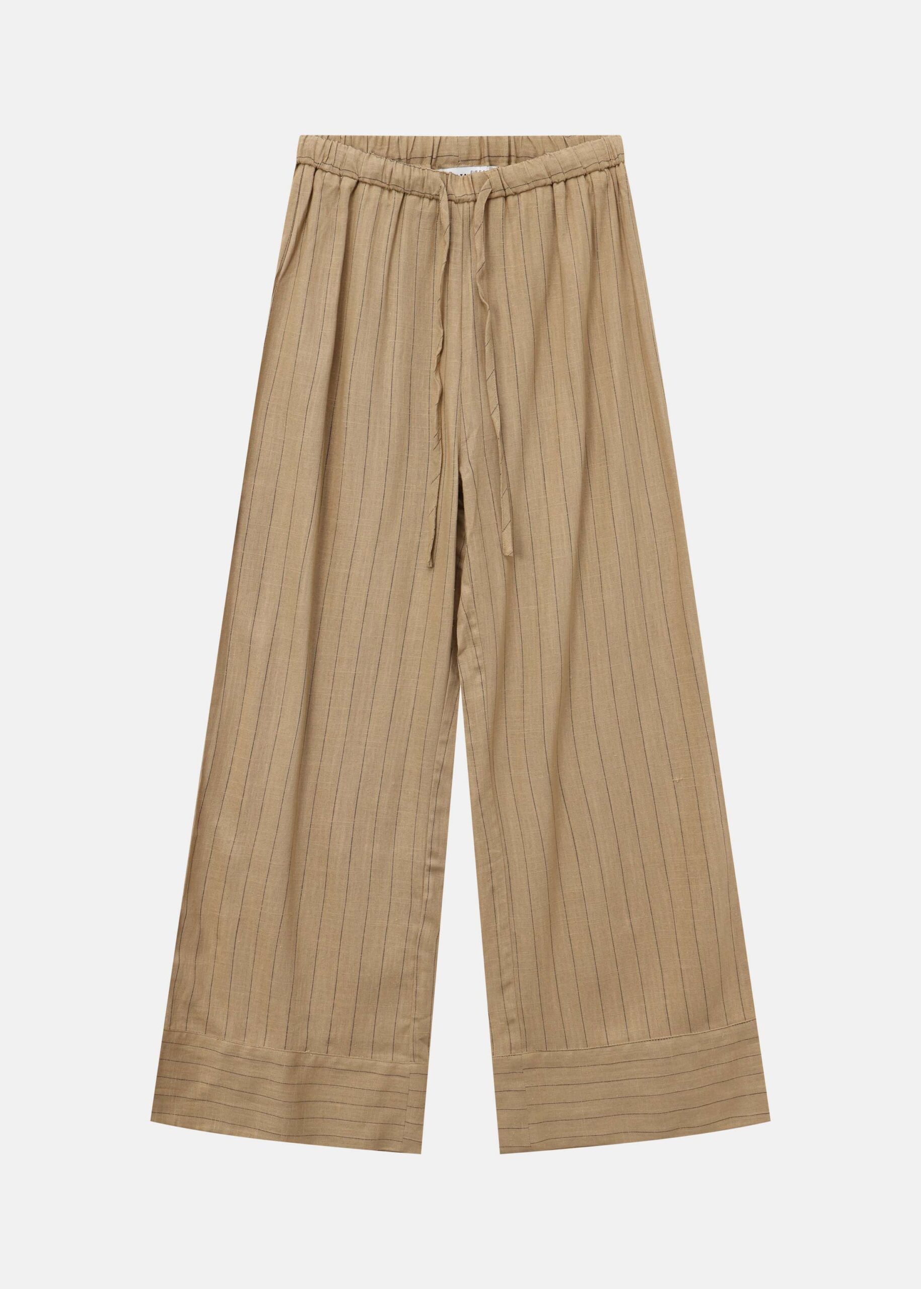 Women trouser, flow, stripe, elastic waist with front tie, practical and comfortable