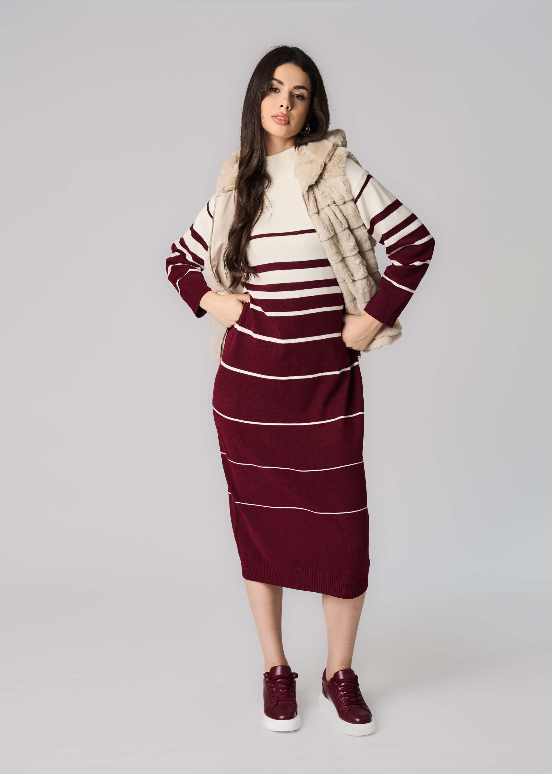 Women dress, striped, knitted, long, high neck, long sleeves, unique and modern