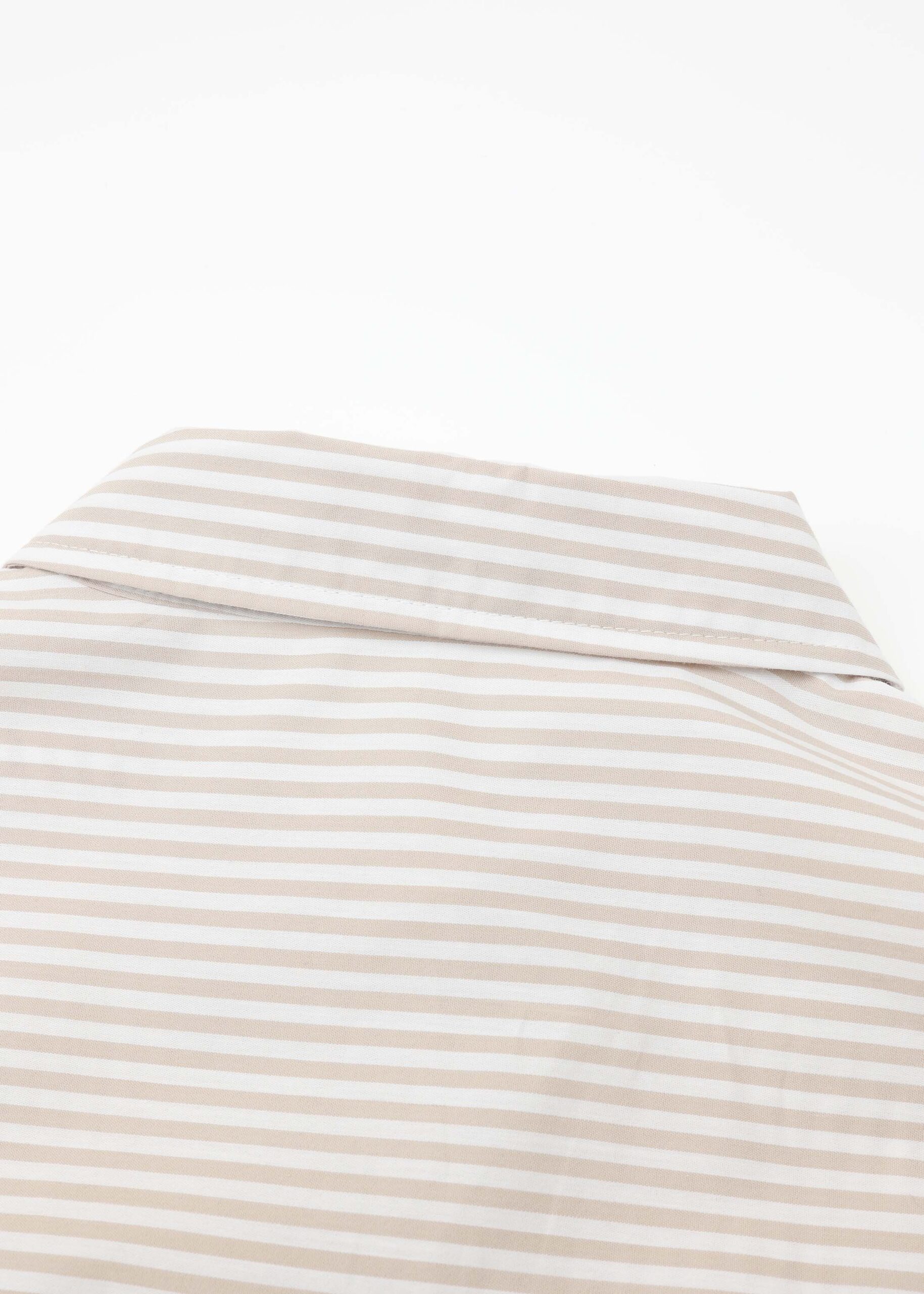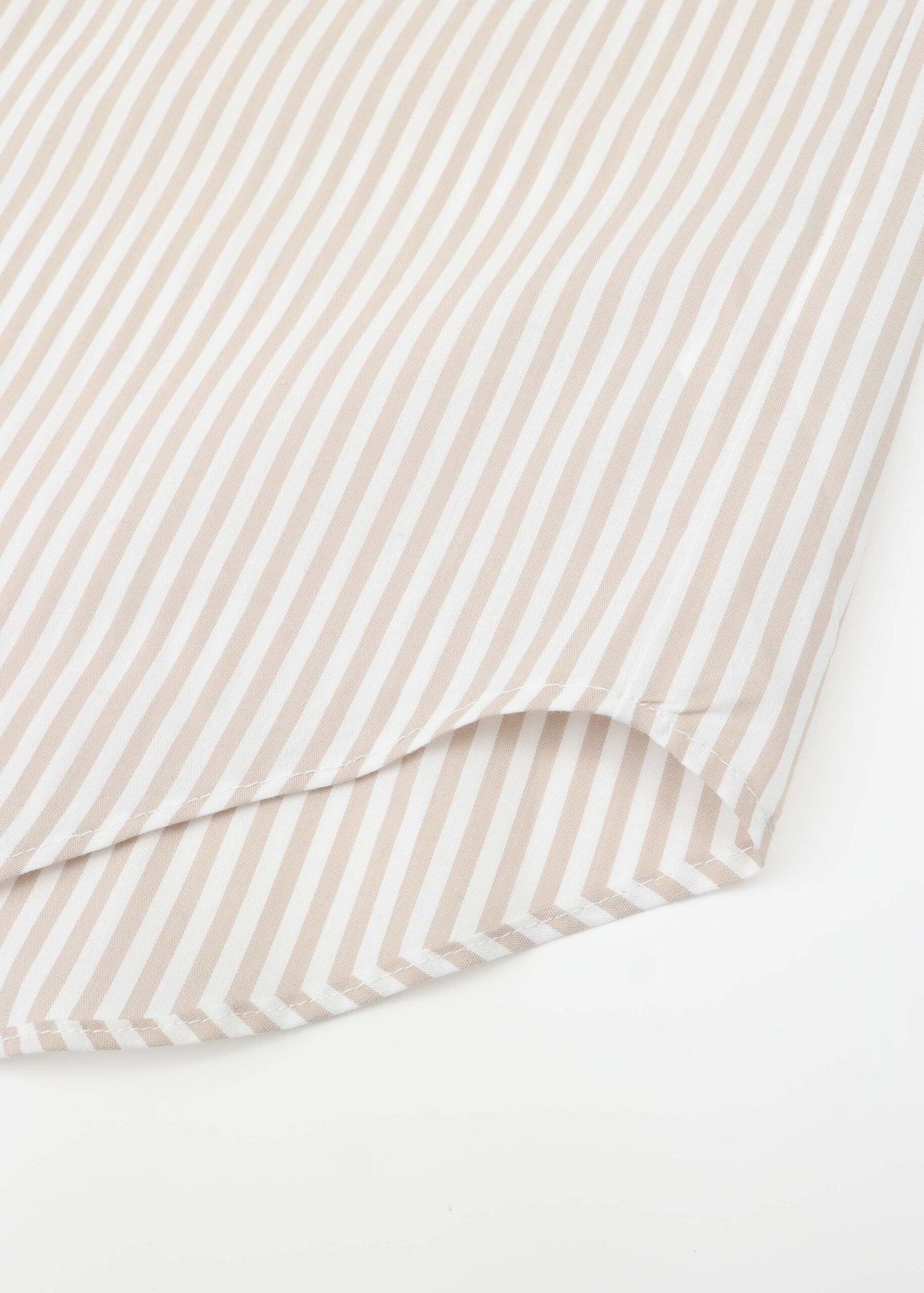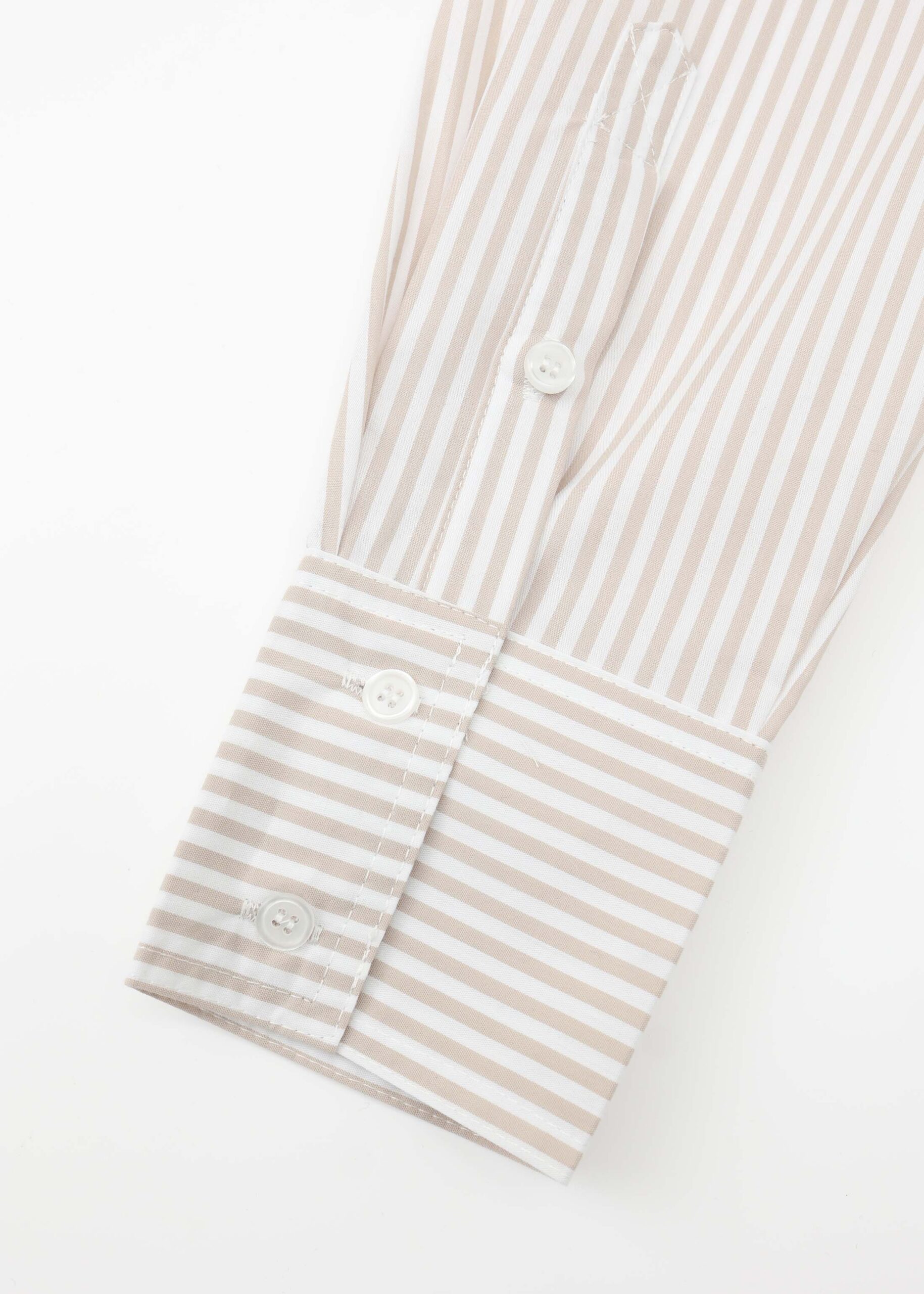Women shirt, striped, rolled collar, front buttons to close, long sleeves, tight cuff, unique and modern
