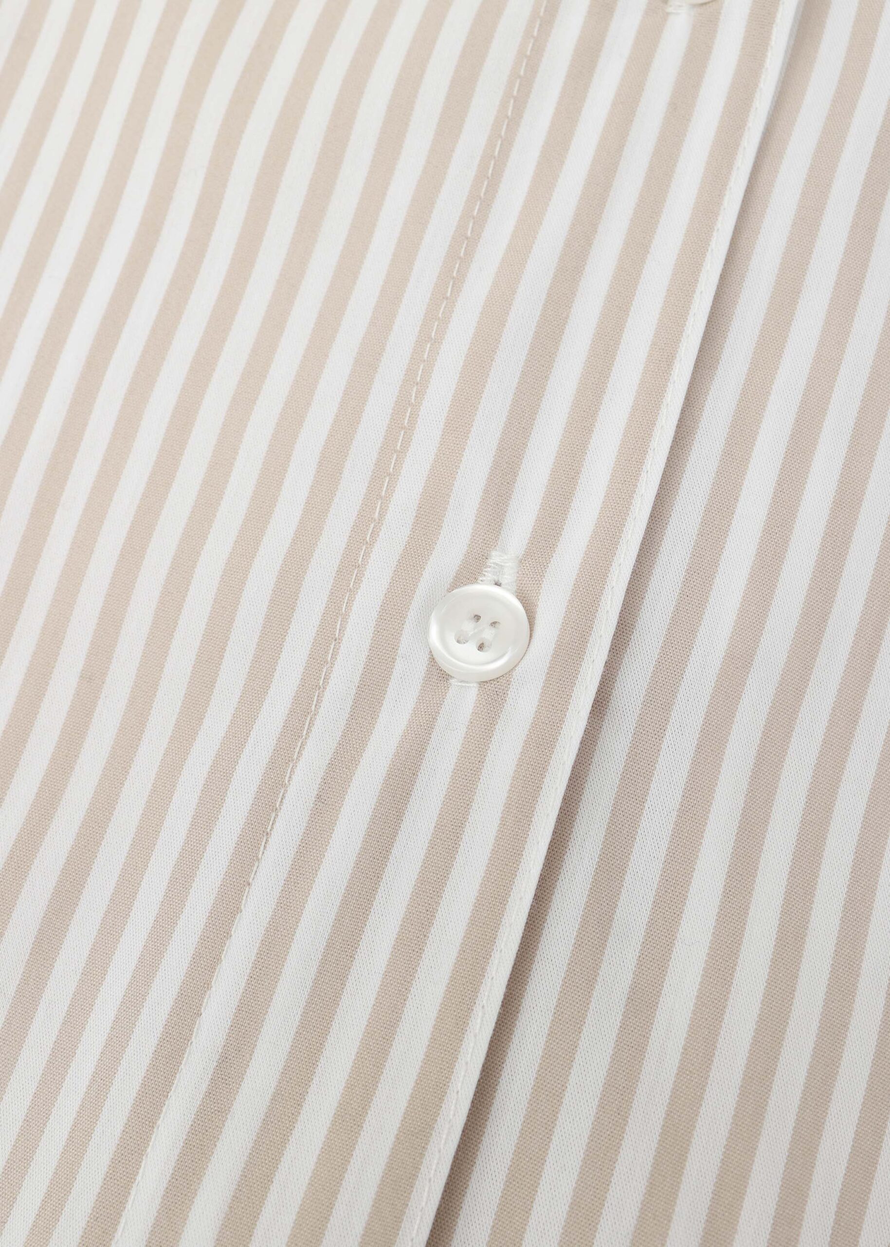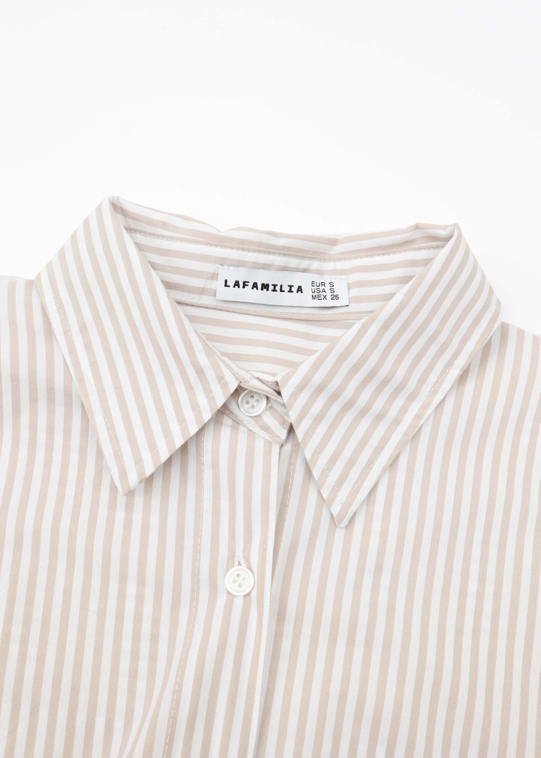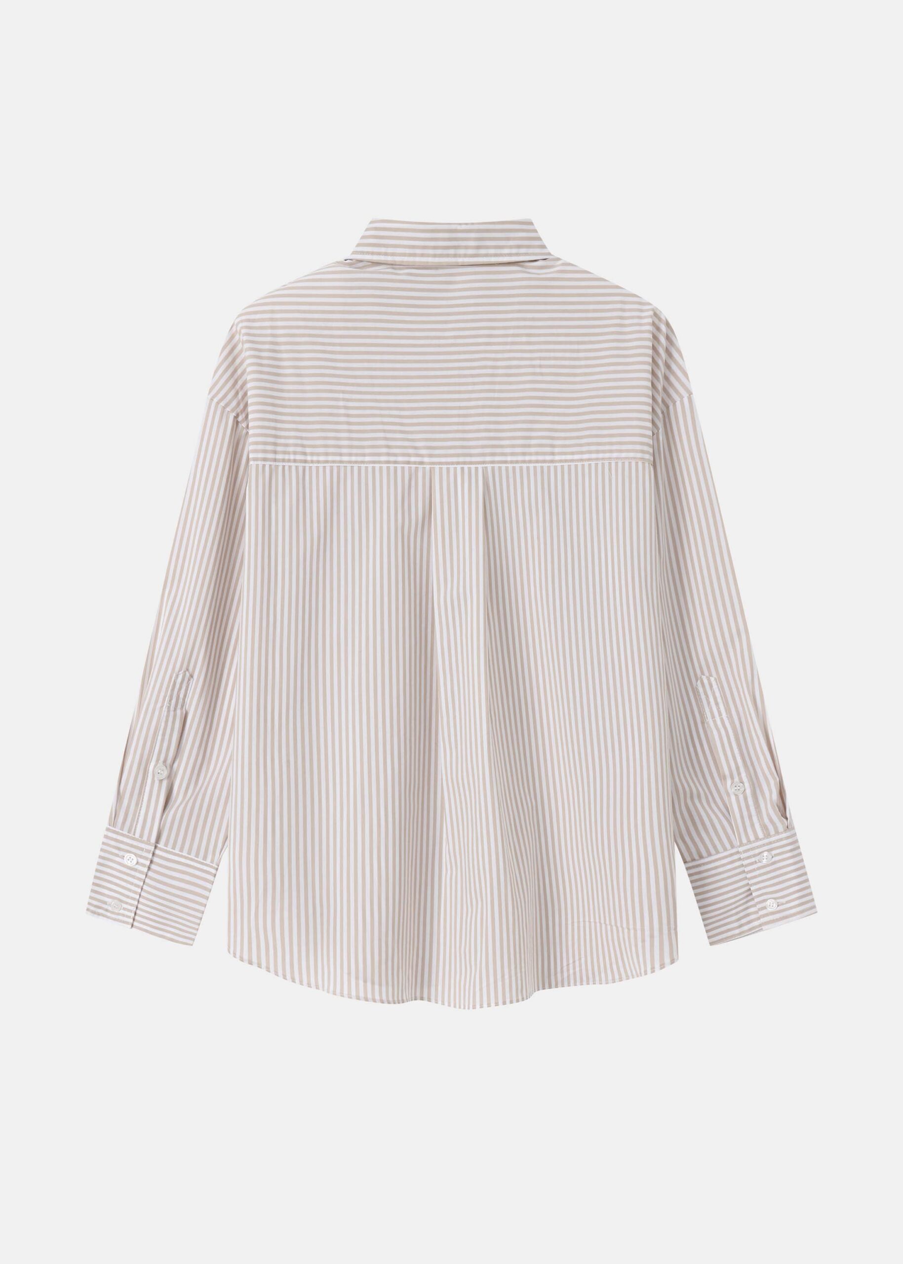 Women shirt, striped, rolled collar, front buttons to close, long sleeves, tight cuff, unique and modern