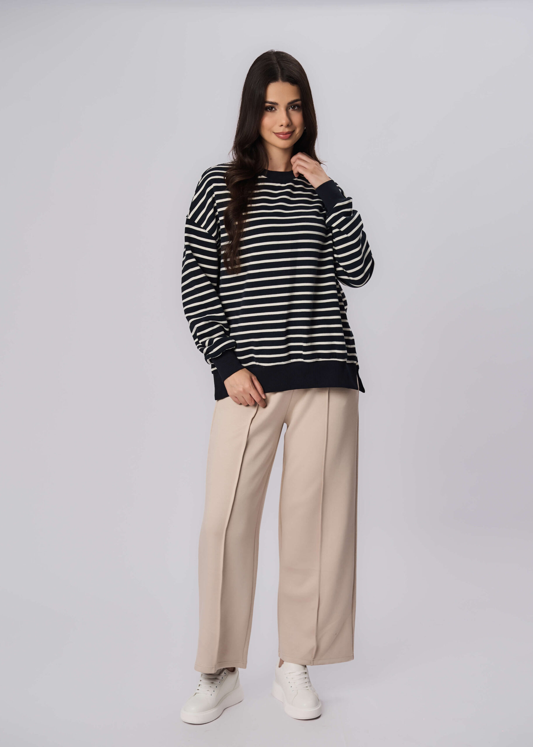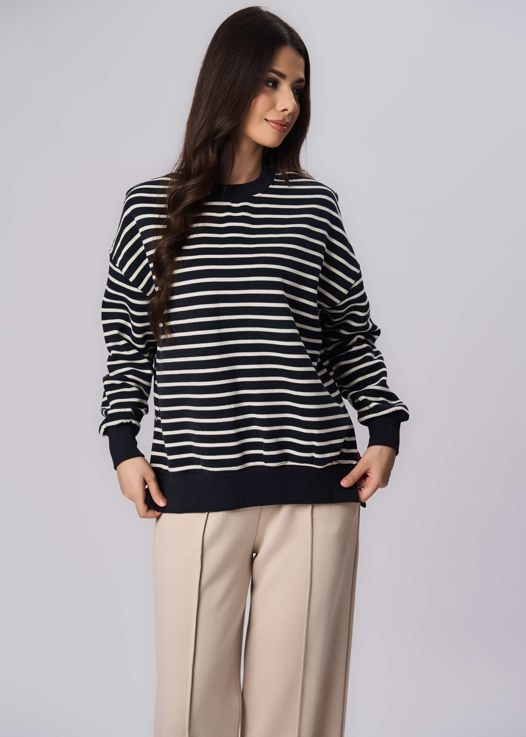 Women sweatshirt, striped, round neck, long sleeves with tight cuff, unique and practical