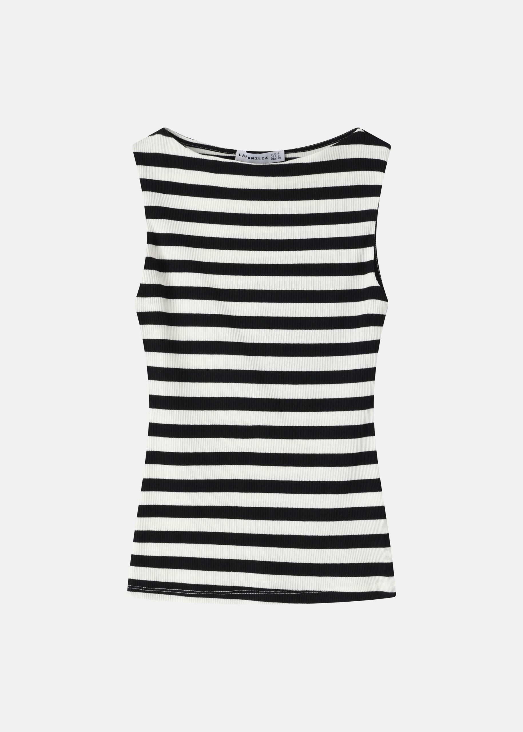 Women top, striped, boat neck, sleeveless, unique and practical