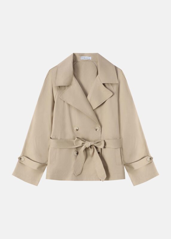 Women cardigan, suede, eyelet embroidery, open with waist tie, V neck, long sleeves, unique and modern