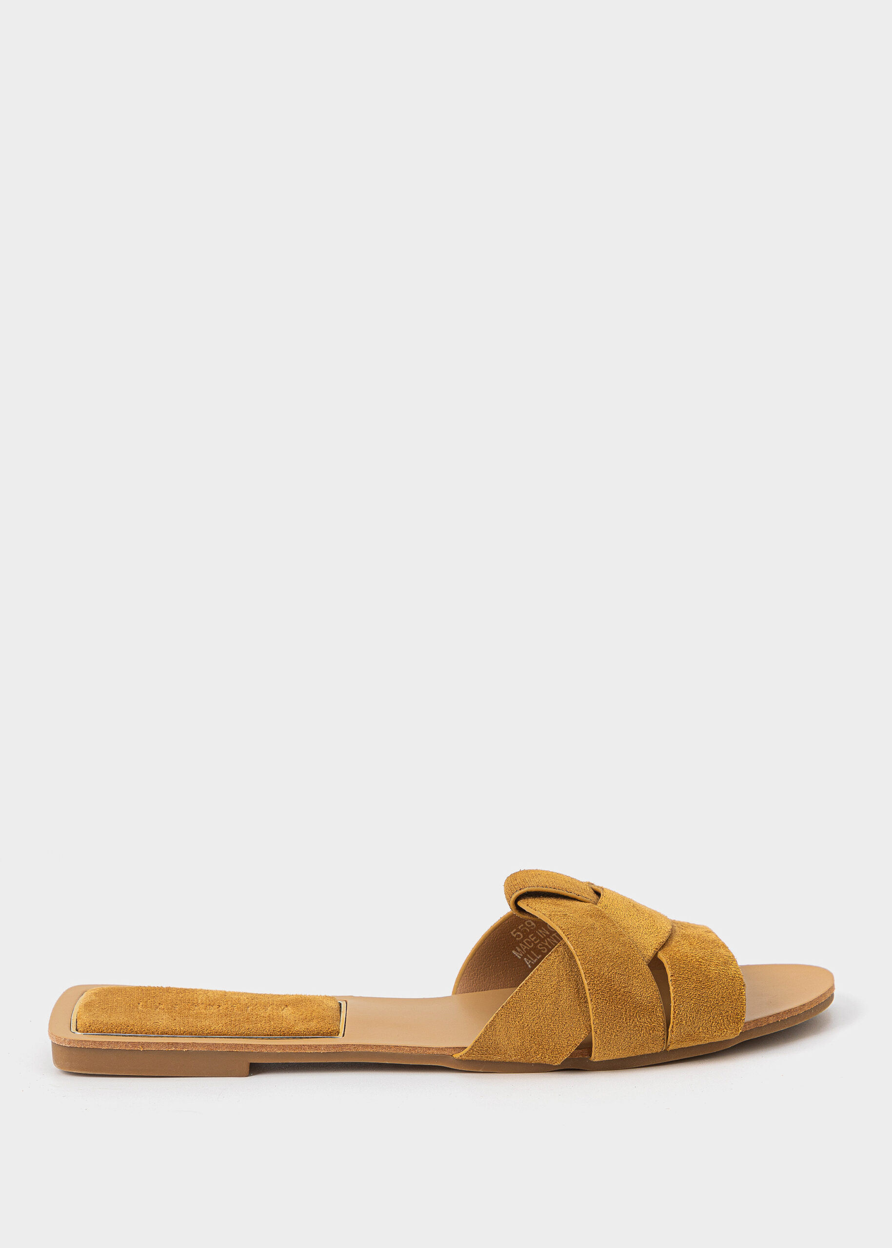Women slipper, suede, flat, open round toe, upper straps, unique and practical