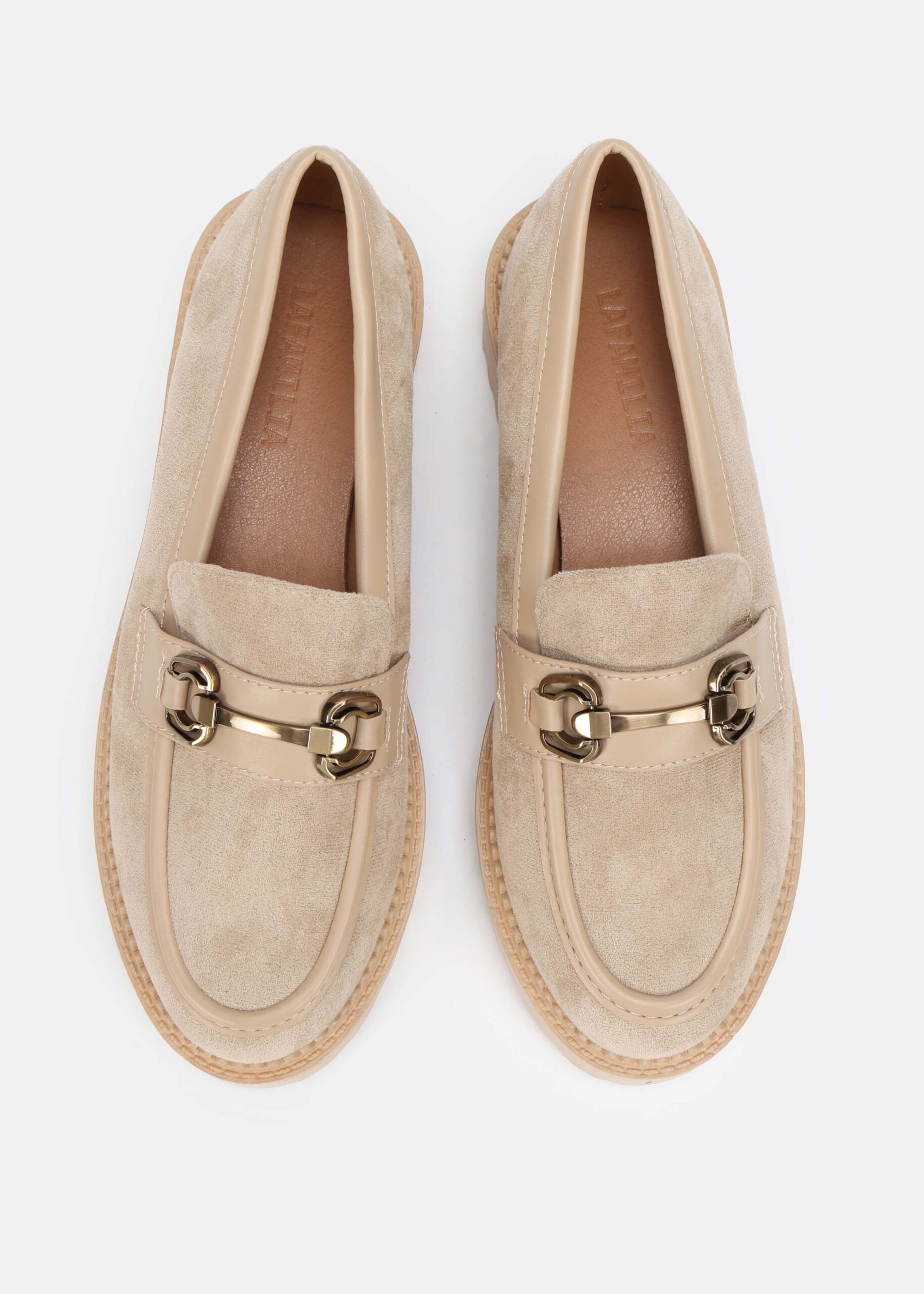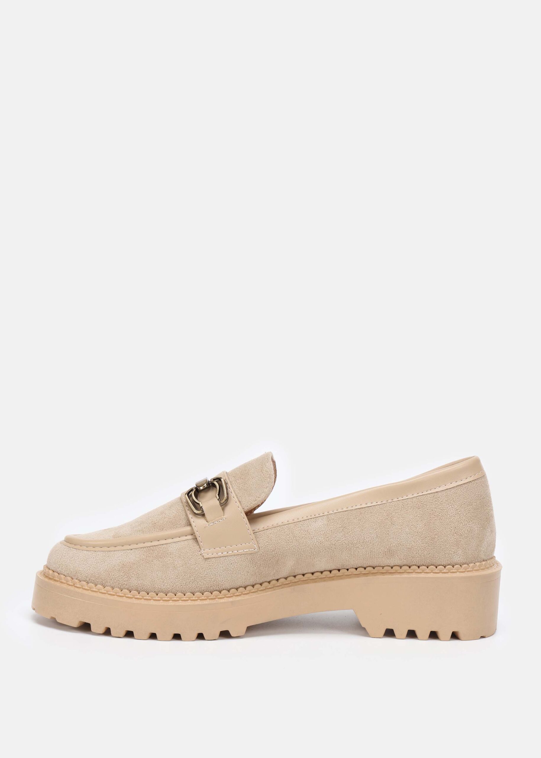 Women topsider, suede, round toe, rubber chunky sole, upper chain decor with leather strap, unique and comfortable