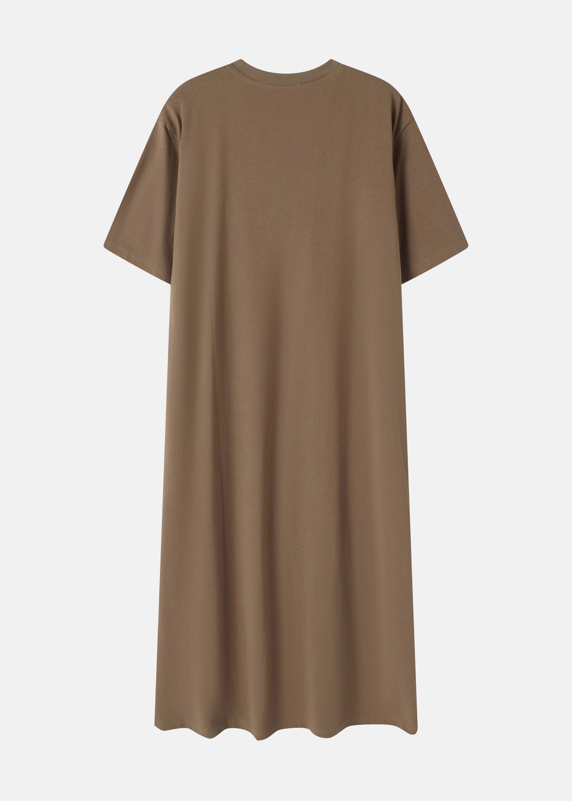 Women dress, maxi, plain, basic, round neck, short sleeves, slit side, practical and comfortable