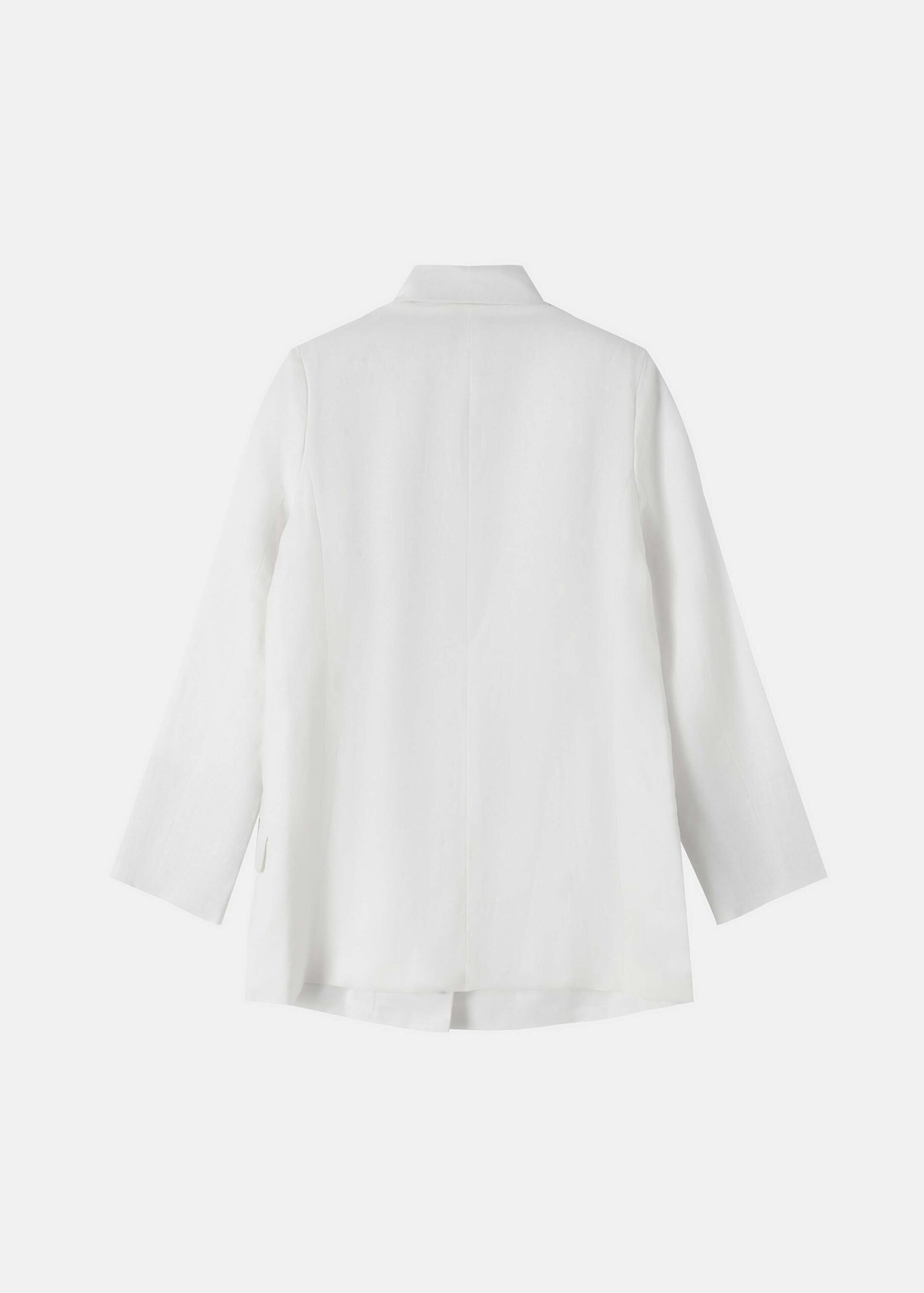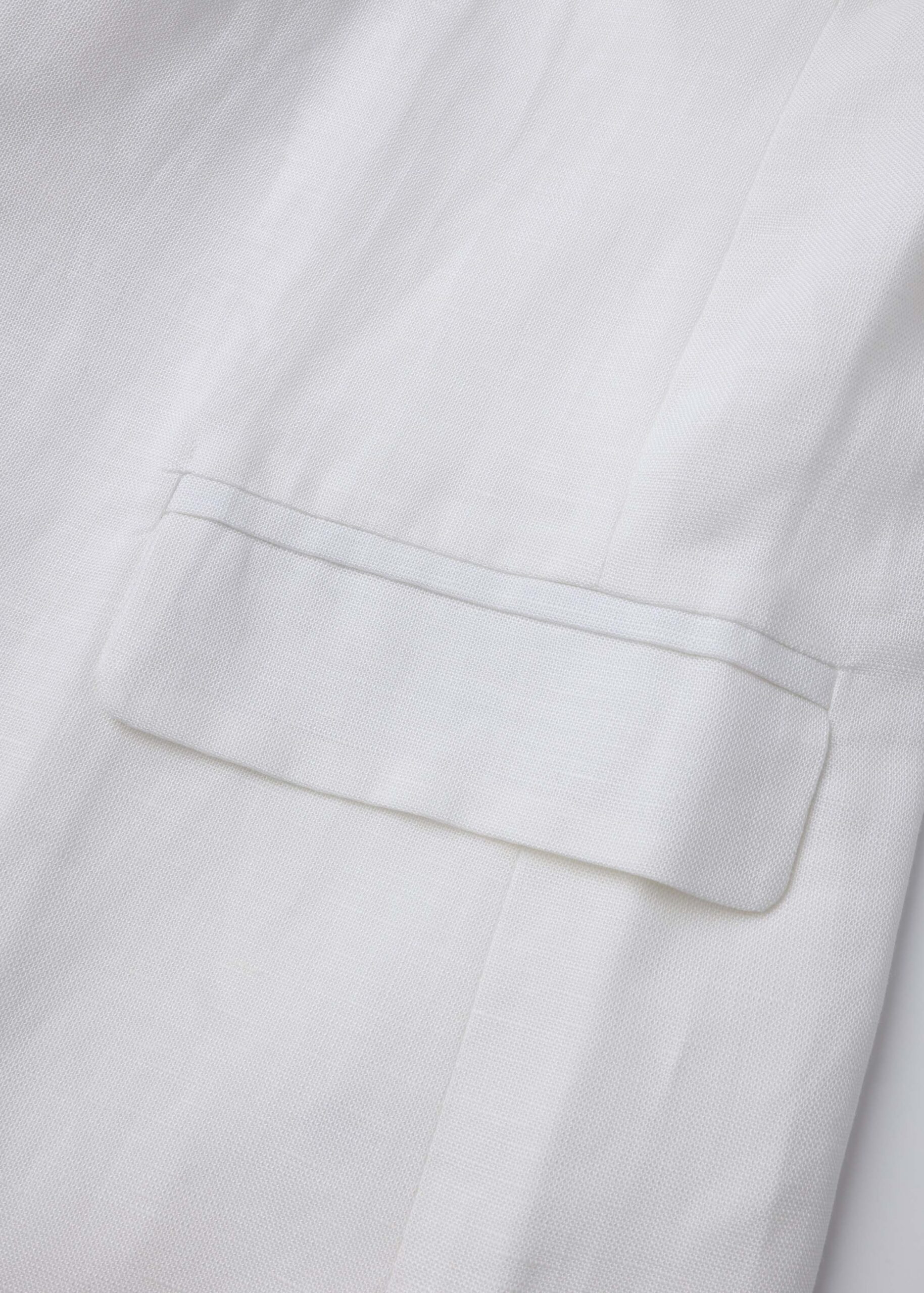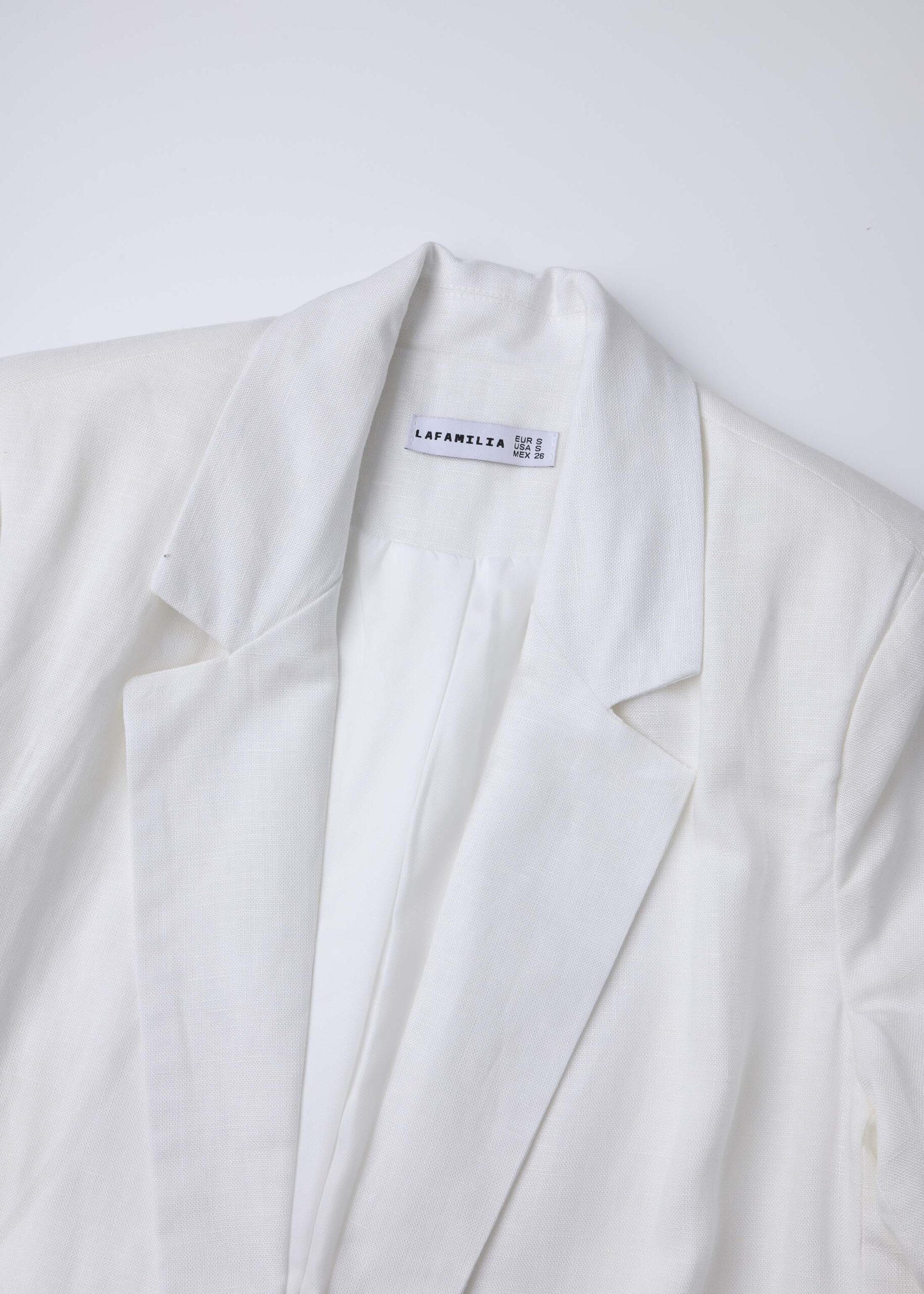 Women blazer, plain, tailored, lapel collar, front buttons, front fake pockets, long sleeves, unique and modern