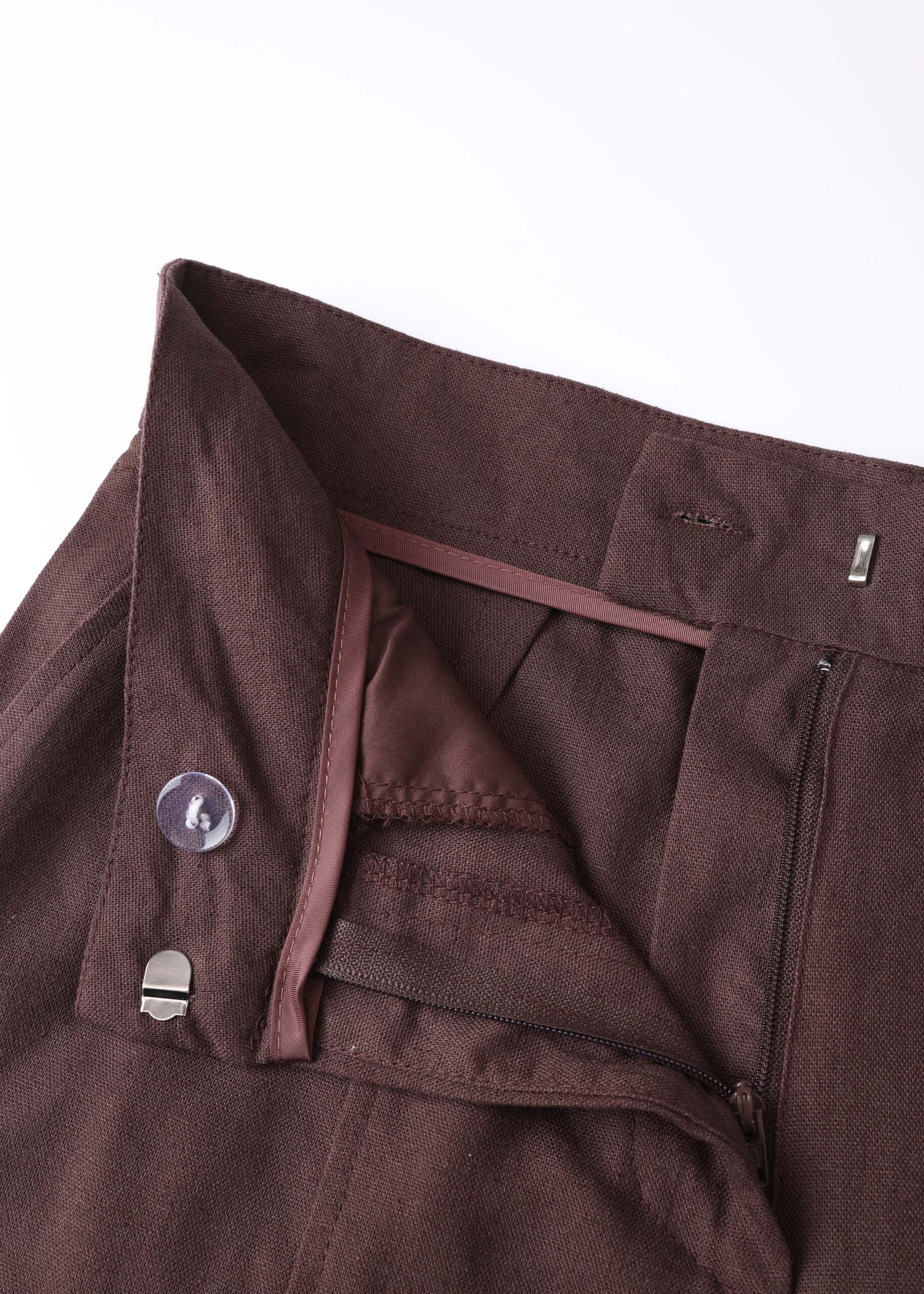 Women trouser, tailored, plain, front button and zipper closure, front pockets, unique and modern