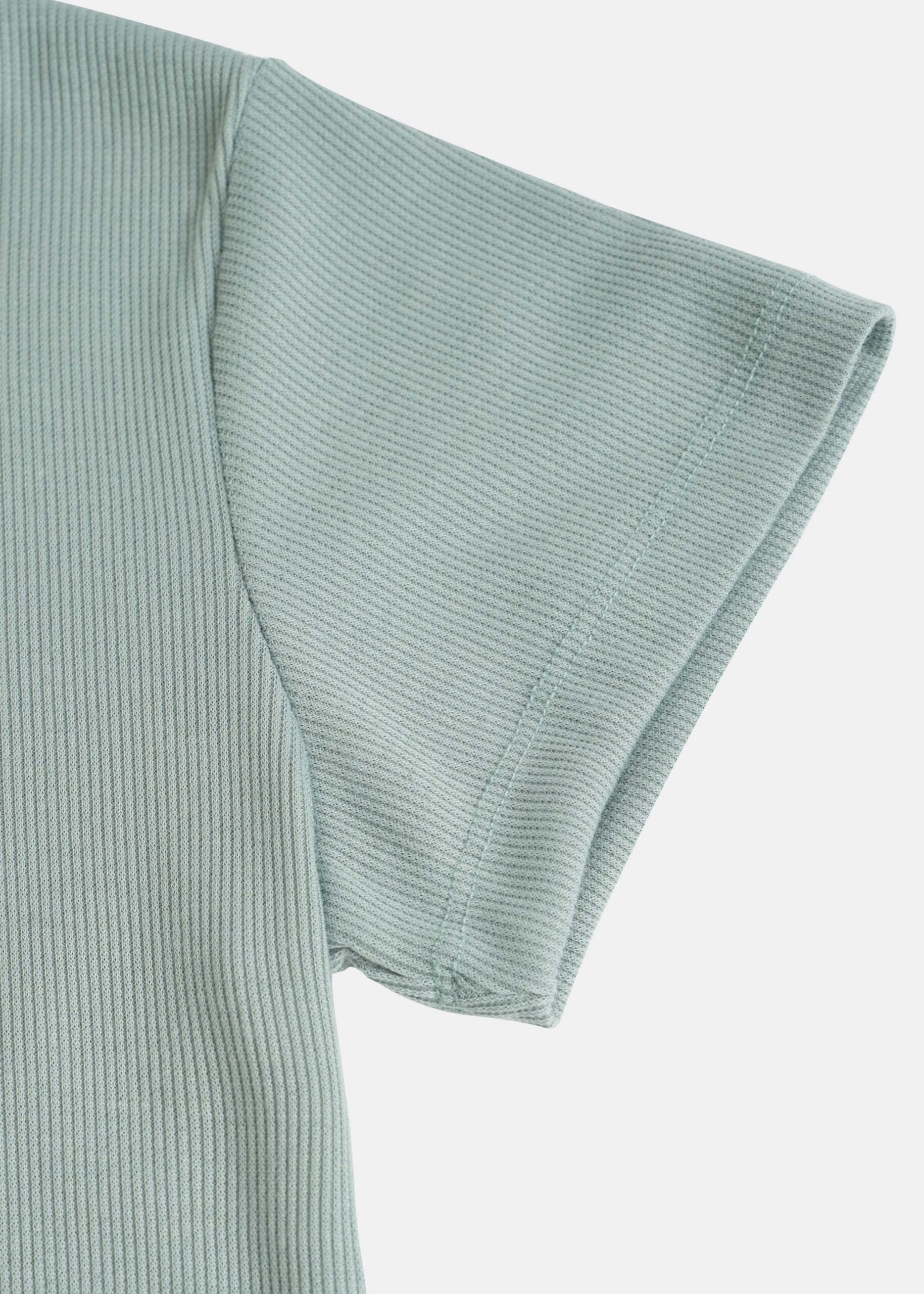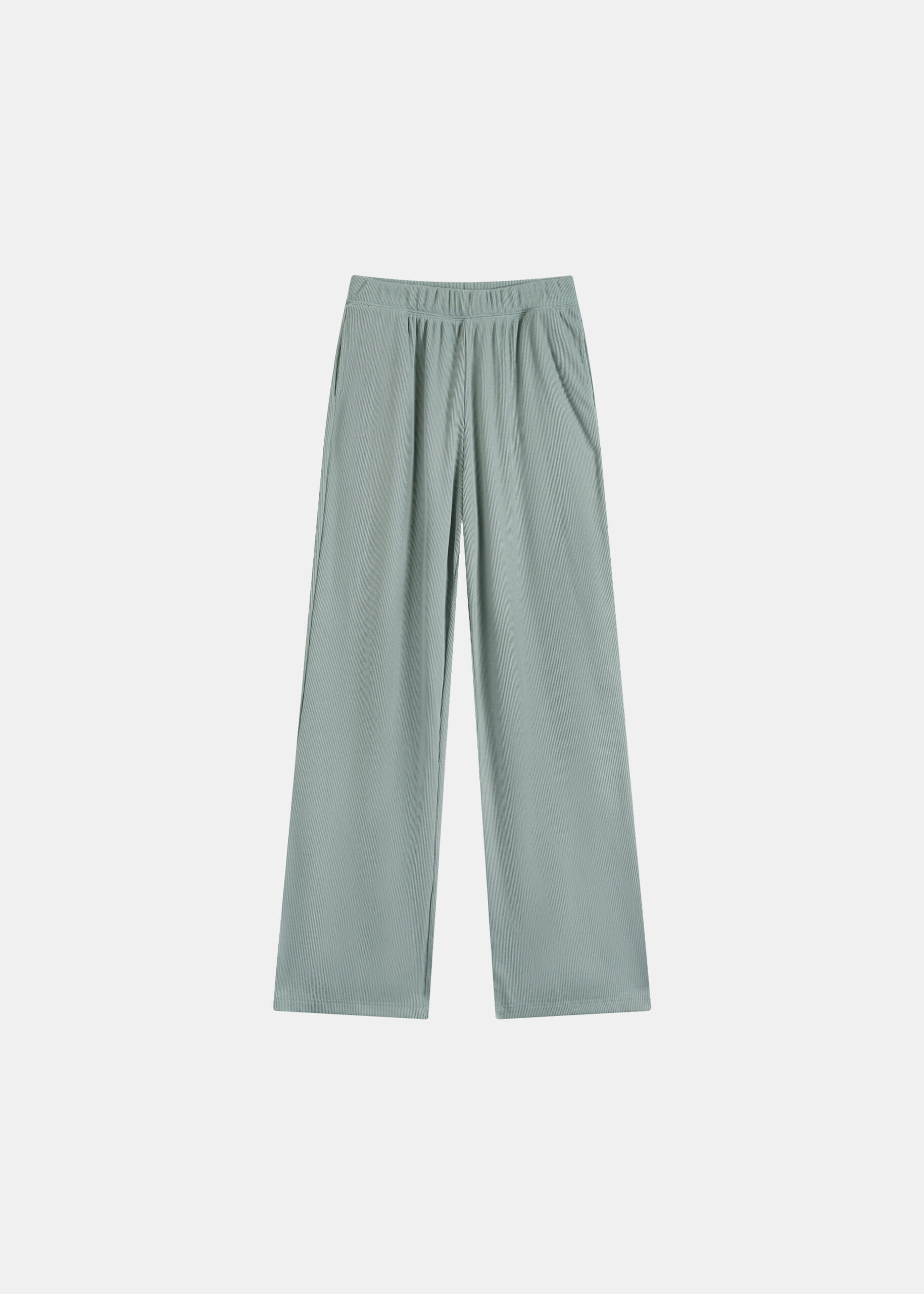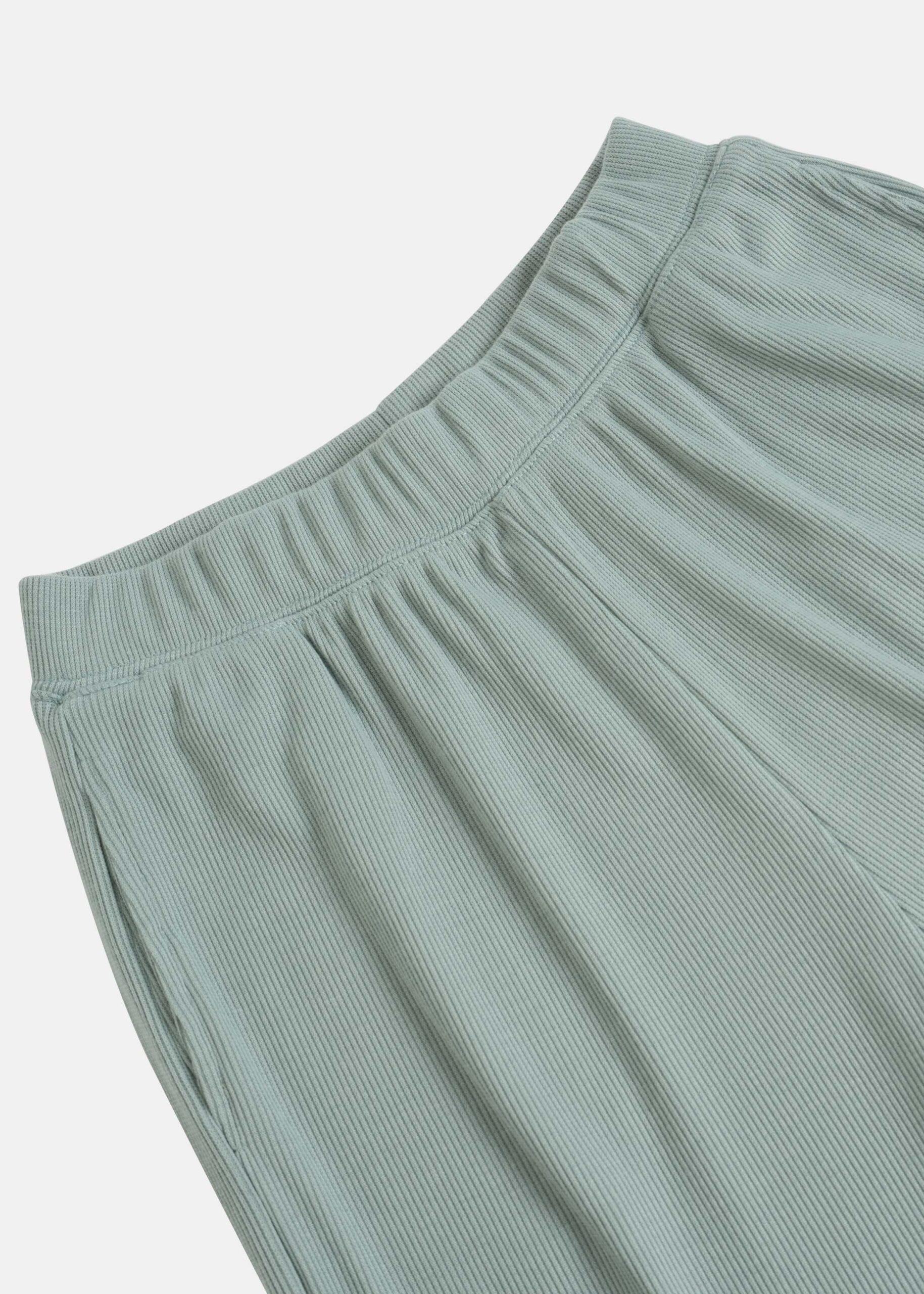 Women pajama, two-pieces, plain, striped fabric, t-shirt, round neck, short sleeves, trouser, elastic waist, front pockets, comfortable and practical