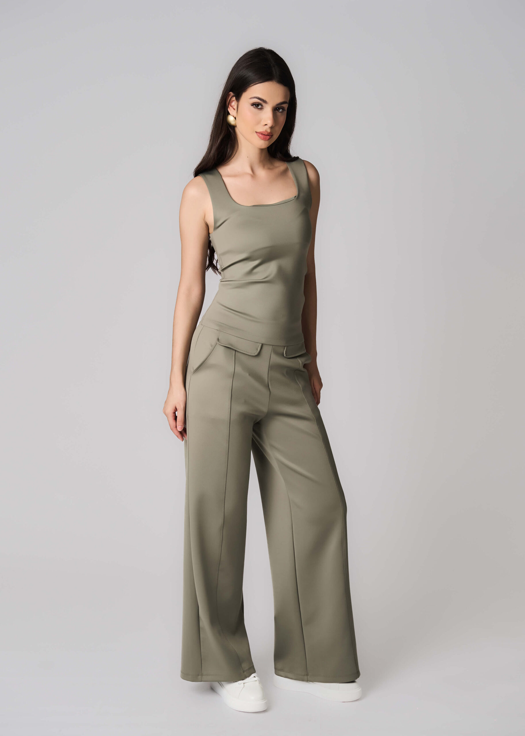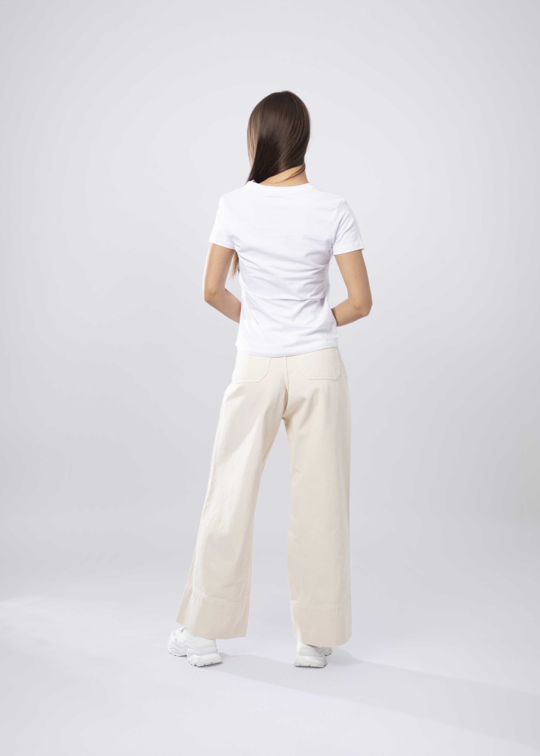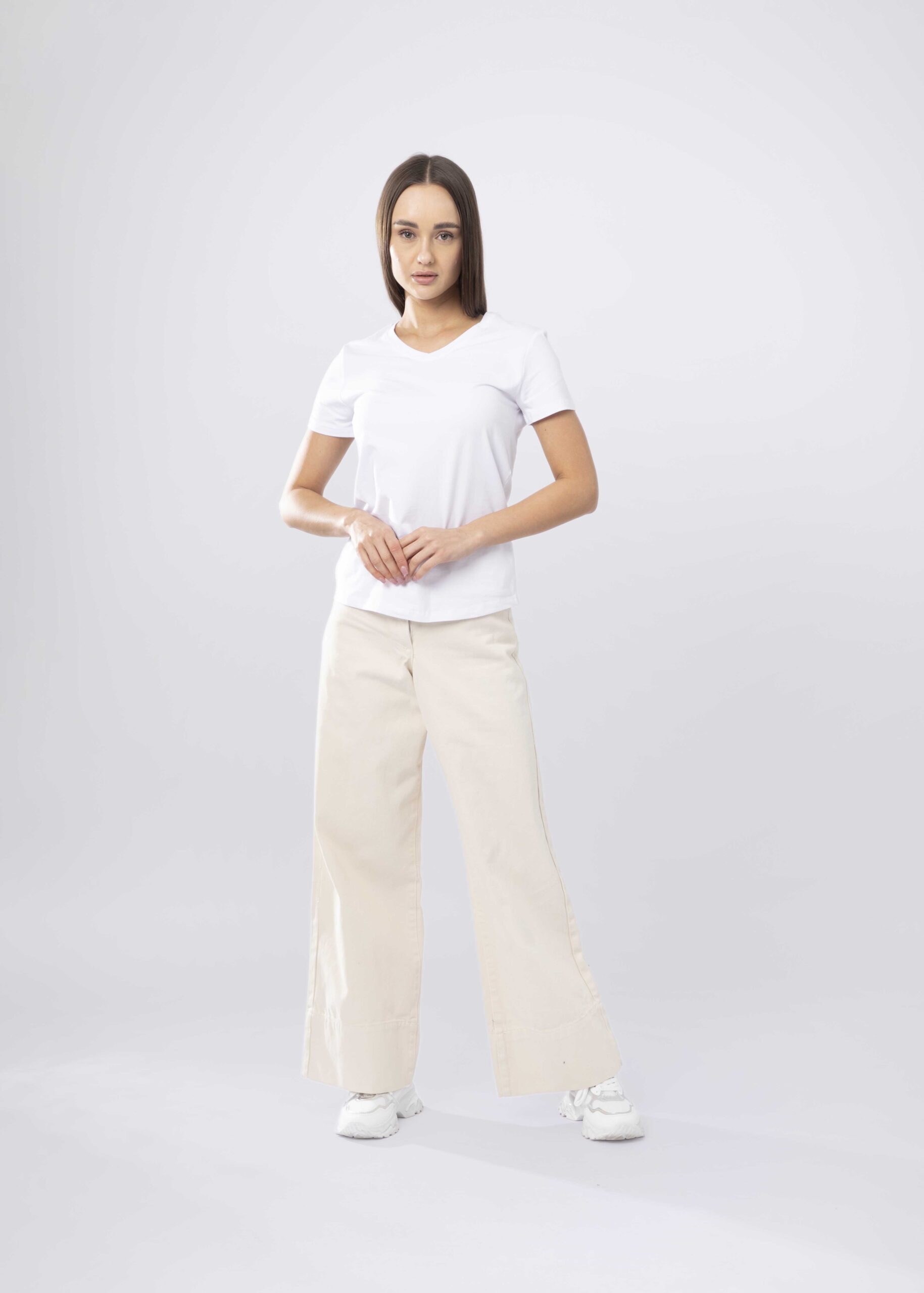 Women trouser, jeans, wide-leg, high-rise, front button and zipper closure, front and back pockets, practical and unique