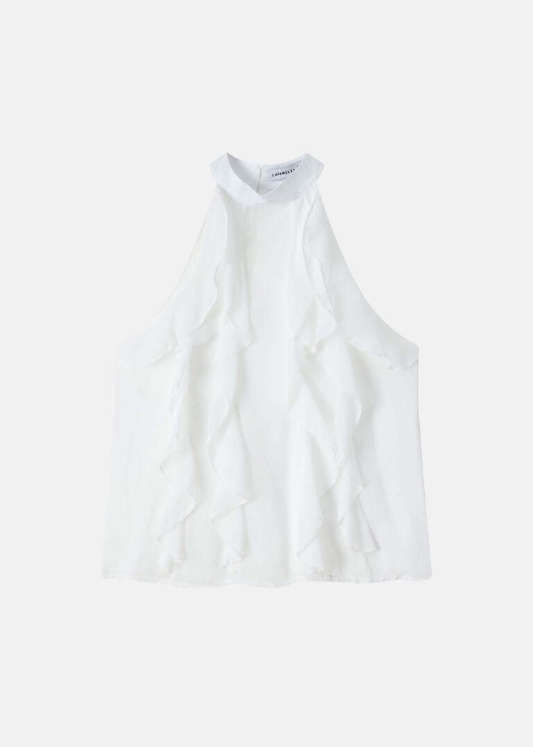12.50 JODWomen top, ruffled detail from the front, halter neck, back buttons to close, sleeveless, unique and modern