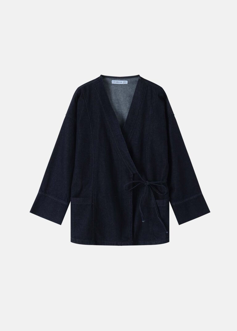 25.00 JODWomen cardigan, jeans, Kimono design, wrap from the front with side tie, long sleeves, front pockets, V neck, unique and practical