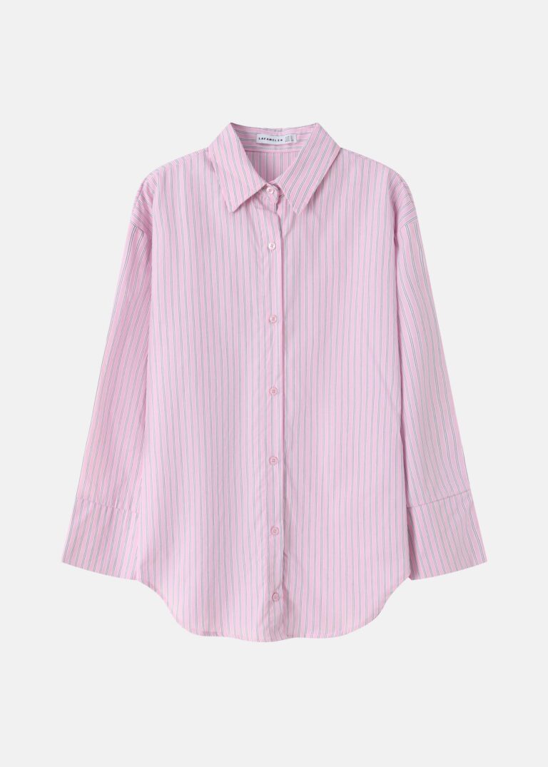 Women shirt, striped, rolled collar, front buttons to close, long sleeves, tight cuff, unique and modern