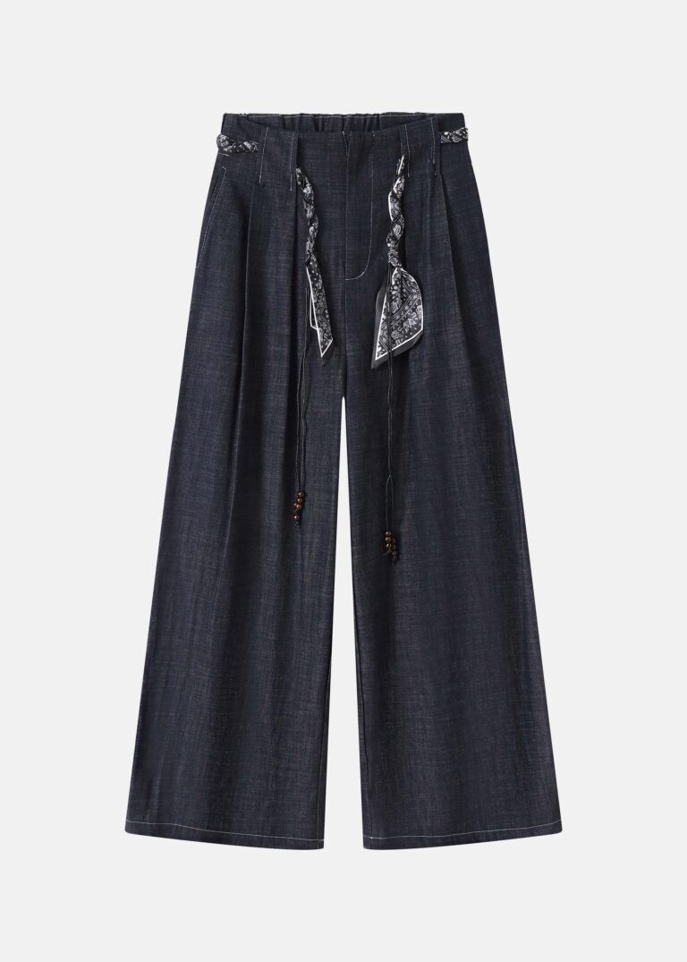 Women Wide-Leg Denim Trouser With Fabric Belt