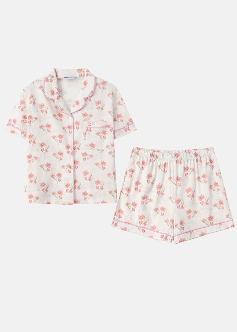 15.90 JODWomen pajama, two-pieces, printed, shirt, rolled collar, short sleeves, front chest pocket, front buttons to close, short, elastic waist, comfortable and practical