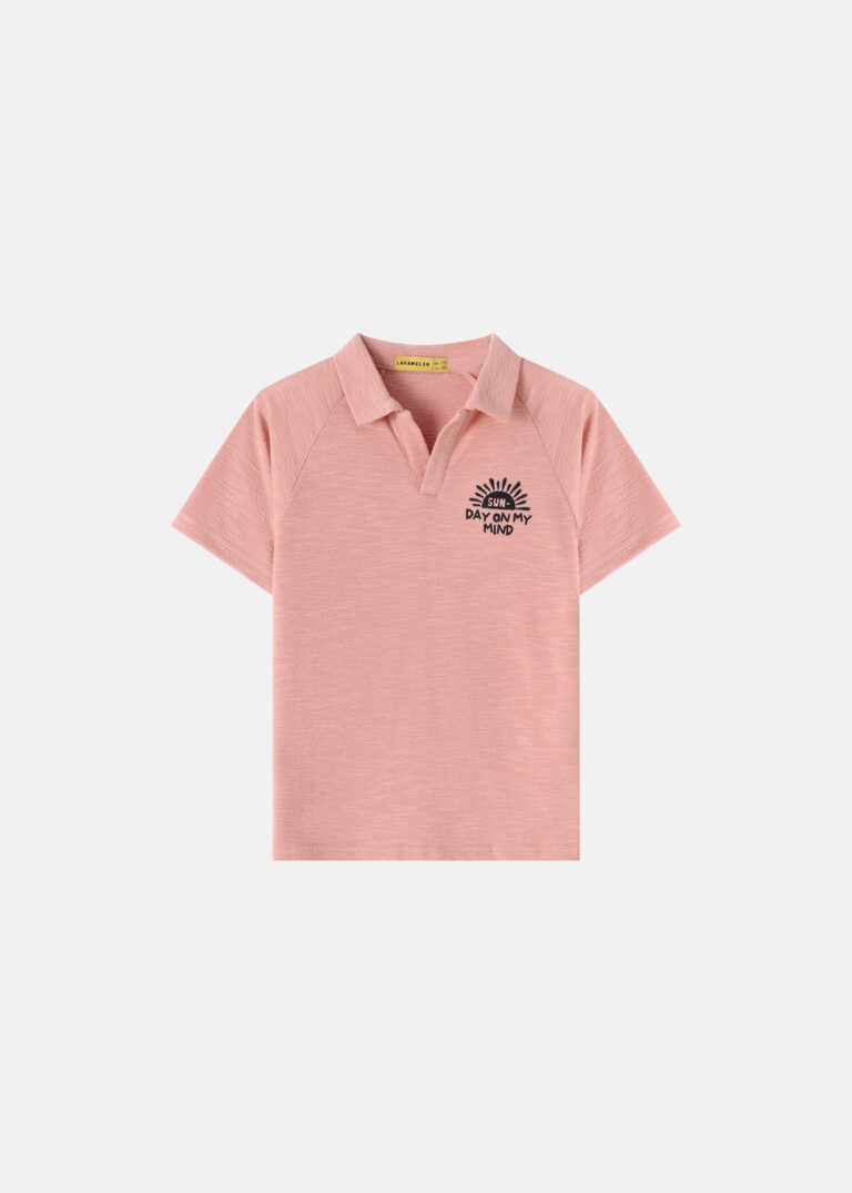 8.95 JODKids boy polo shirt, rolled collar V neck, short sleeves, “Day on My Mind” printed from the front, unique and modern