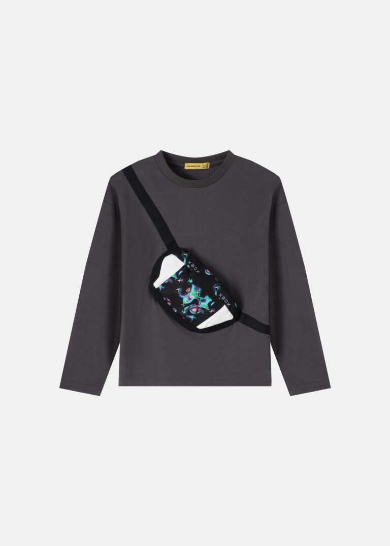 9.95 JODKids boy blouse, Built-in Crossbody Bag with X-Box printed design, round neck, long sleeves, unique and modern