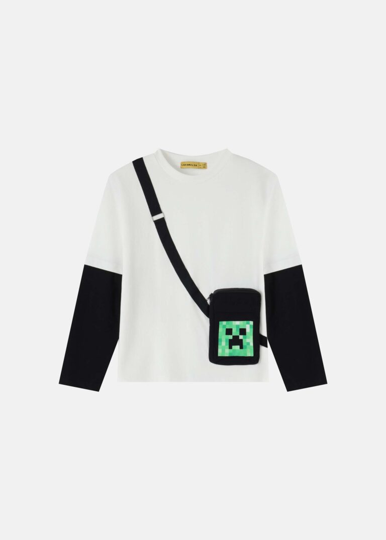9.95 JODKids boy blouse, Built-in Crossbody Bag with Minecraft printed design, round neck, long sleeves, unique and modern