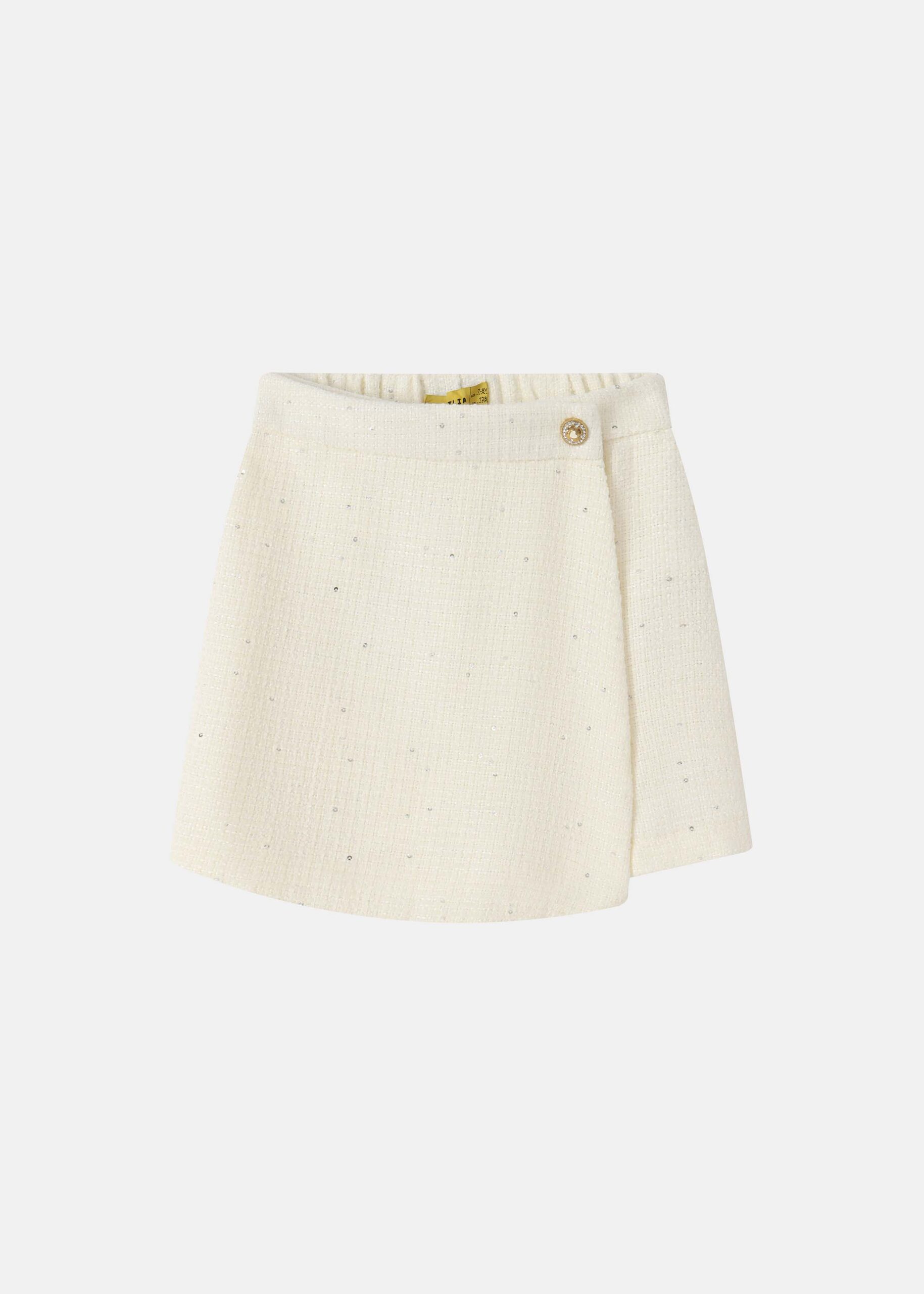 9.95 JODKids girl skirt-short, knitted fabric, glittery beads decor, elastic waist, wrap design from the front with side button, unique and modern