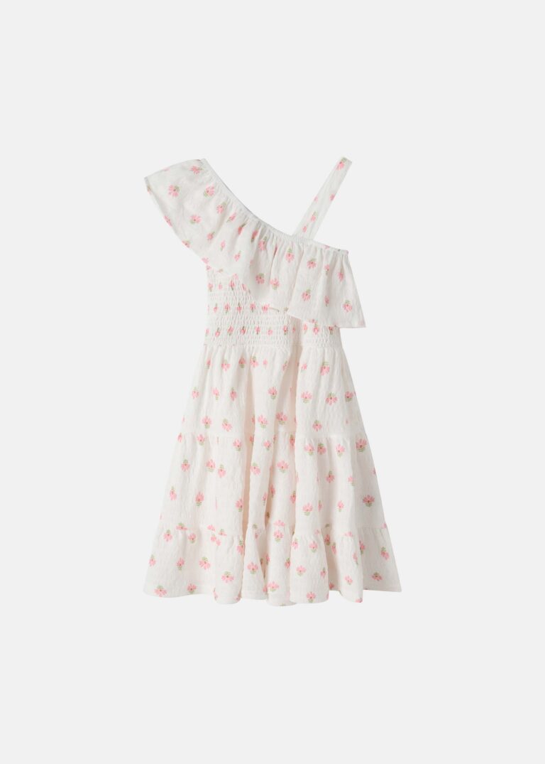 15.95 JODKids girl dress, floral, ruffled layers, elastic top, one ruffled shoulder, unique and modern