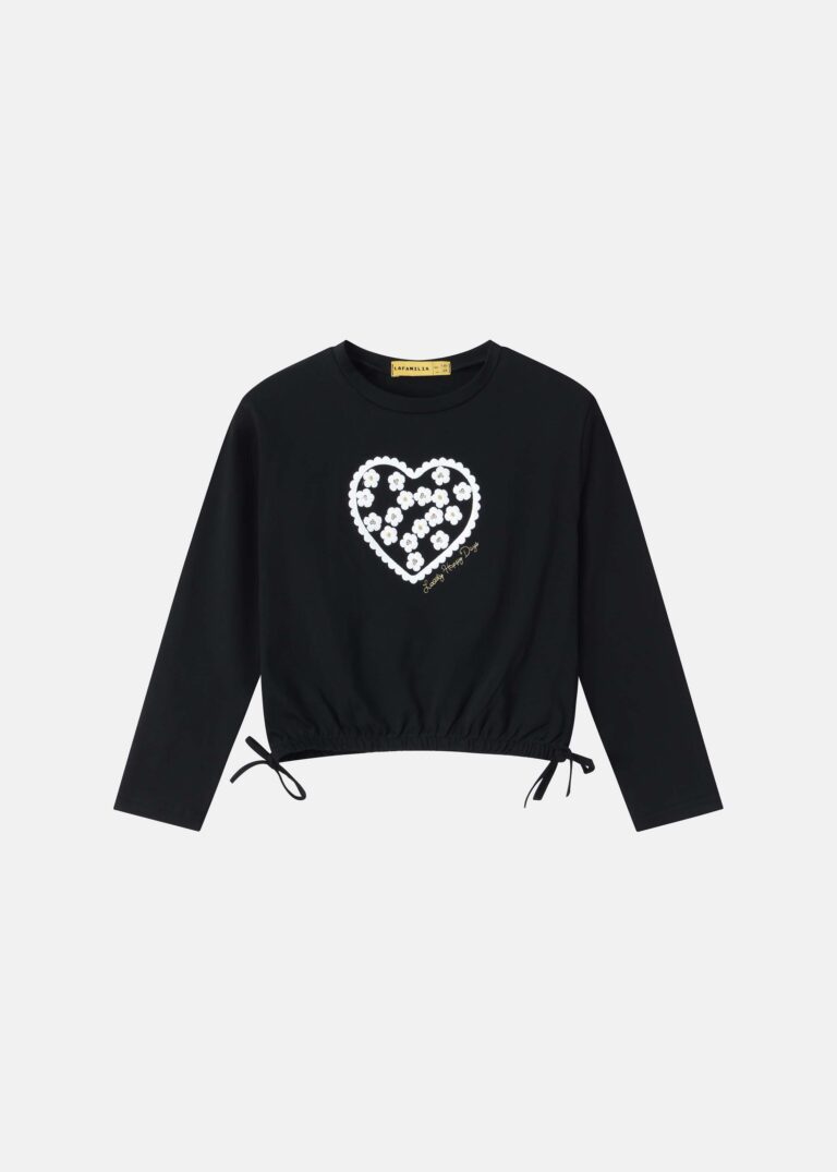 9.95 JODKids girl blouse, flowers printed from the front, round neck, long sleeves, elastic waist with sides tie, unique and practical