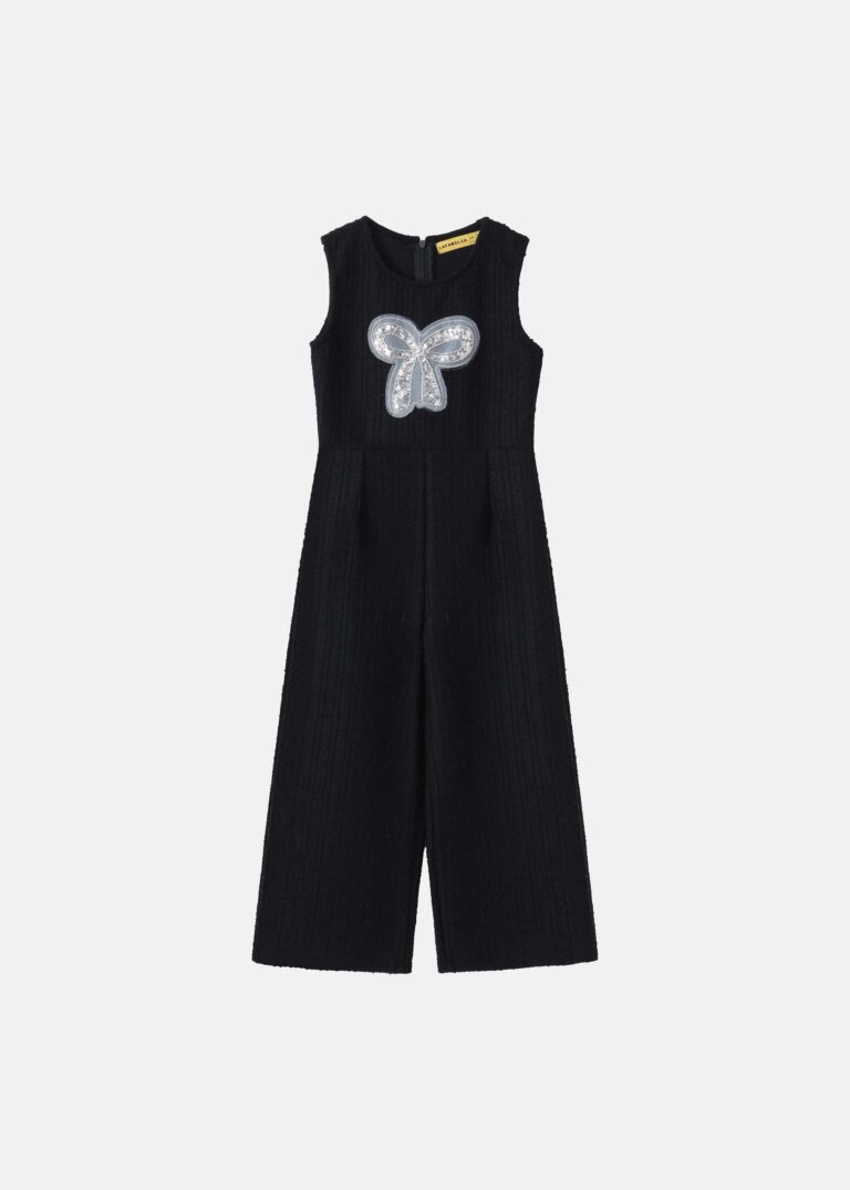 14.95 JODKids girl jumpsuit, knitted fabric, round neck, back zipper closure, sleeveless, wide-leg trouser, front bow decor, unique and modern